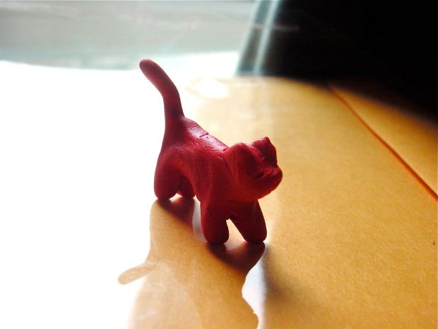 My friend Rob was passing through town on his way to California. He gave me some samples of a wonderful goo that he got last spring at the Maker Faire in San Francisco. This goo is called Sugru and it is a self-setting, air curing rubber that you can use it to fix stuff like exposed electronic cables, holes in your shoes and pretty much anything you can think of. Mr. Andrew has all kinds of ideas about moulding it to make new gadgets. Me, I made a little kitty cat out of my left-over supply.