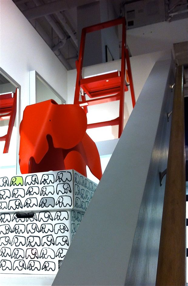 Spotted this bright red elephant at EQ3. It was designed as a piece of children’s furniture by Ray and Charles Eames back in 1945. Originally made of plywood, they were recast in plastic when Vitra put the pachyderms back into production. I would like one very much.
