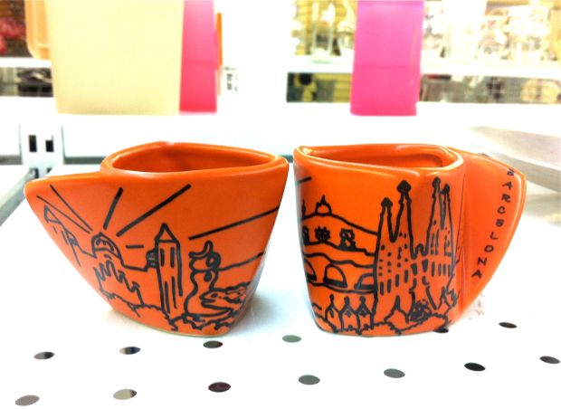 I do not drink hot things. If there are two things I don’t need it’s more stuff and coffee-related stuff. There are also two things I find almost impossible to resist — orange stuff and groovy shapes. I did manage to resist buying these amazing souvenir of Barcelona espresso cups, but the internal struggle was overwhelming.