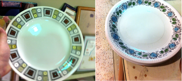 Today is the last day of my current contract. I intend to celebrate by sleeping and also going on a massive thrift shop crawl on Monday and Tuesday. I got an early start last week, stopping by the Goodwill before a show last Friday. There I spotted the Figgjo Flint plates that I wrote about earlier this week, but also these Kathie Winkle for Broadhurst pieces. These designs are known as Kon Tiki (left) and San Tropez (right).