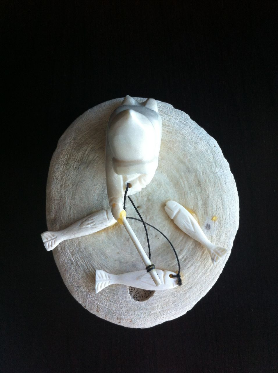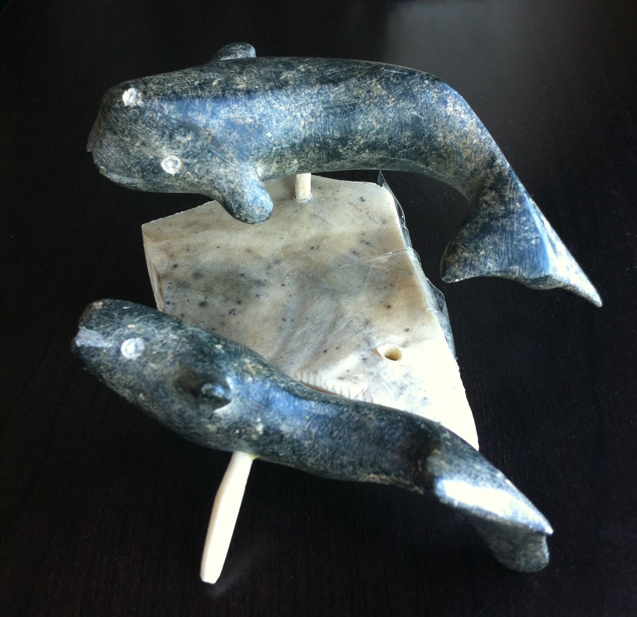 I was in Kitchener visiting the parents for Easter. As I have mentioned before, my folks instilled the collecting fever in me, taking me to antique and craft boutiques when I was a wee girl. They are also fans of Inuit art and picked up the pieces pictured above and below from a gallery in St. John’s in the 1970s.
