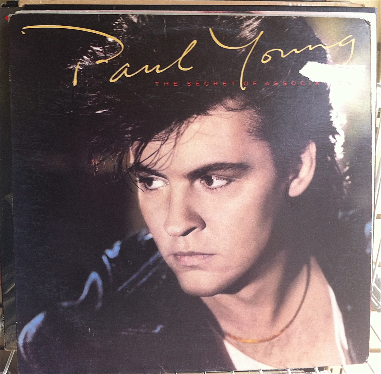 Pretty boy Paul Young has glanced away from us for a second in this brooding cover image. Hus leather jacket and t-shirt combo is timeless. His tousled pompadour is very of the moment (although more for the ladies). I even see the goldy-looking chain thing coming back among the guys.