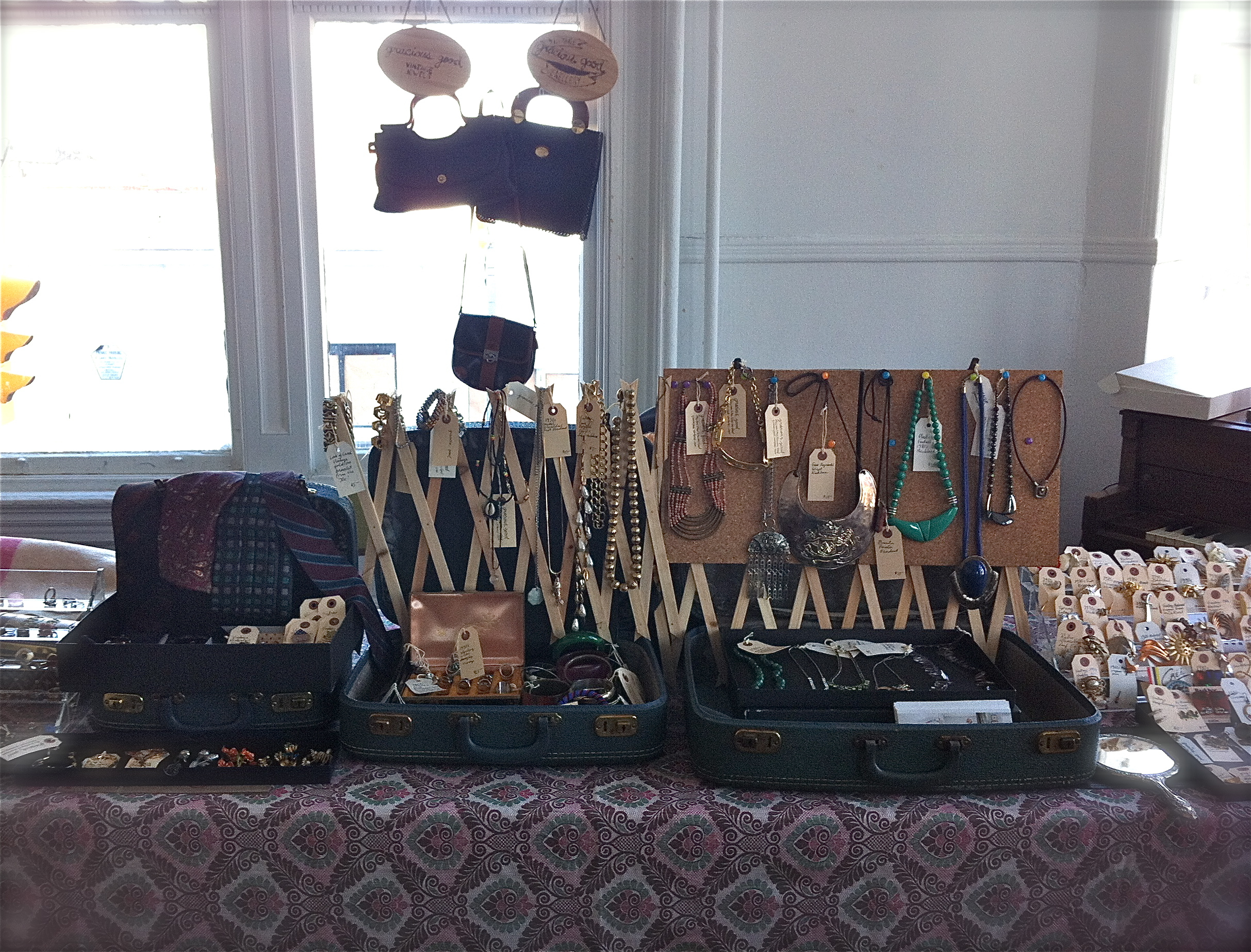Yesterday’s Junction Flea was super fun. Got a chance to mingle with the other vendors, Mr. Andrew and Mr. Justin and I enjoyed some banter, ate some tasty tacos and saw many friends. From a business standpoint, I got to try out my new display system (three retrofitted vintage suitcases I picked up at the Sally Ann last February). It definitely shows the jewels better than my old, gerry-rigged system of bits and pieces of things I found on the sidewalk. As Mr’ Justin observed, the old display made the jewels look junky. Another added benefit, because you can use the suitcases to store jewellery, you don’t have carry boxes of baubles and boxes of display dooddads.