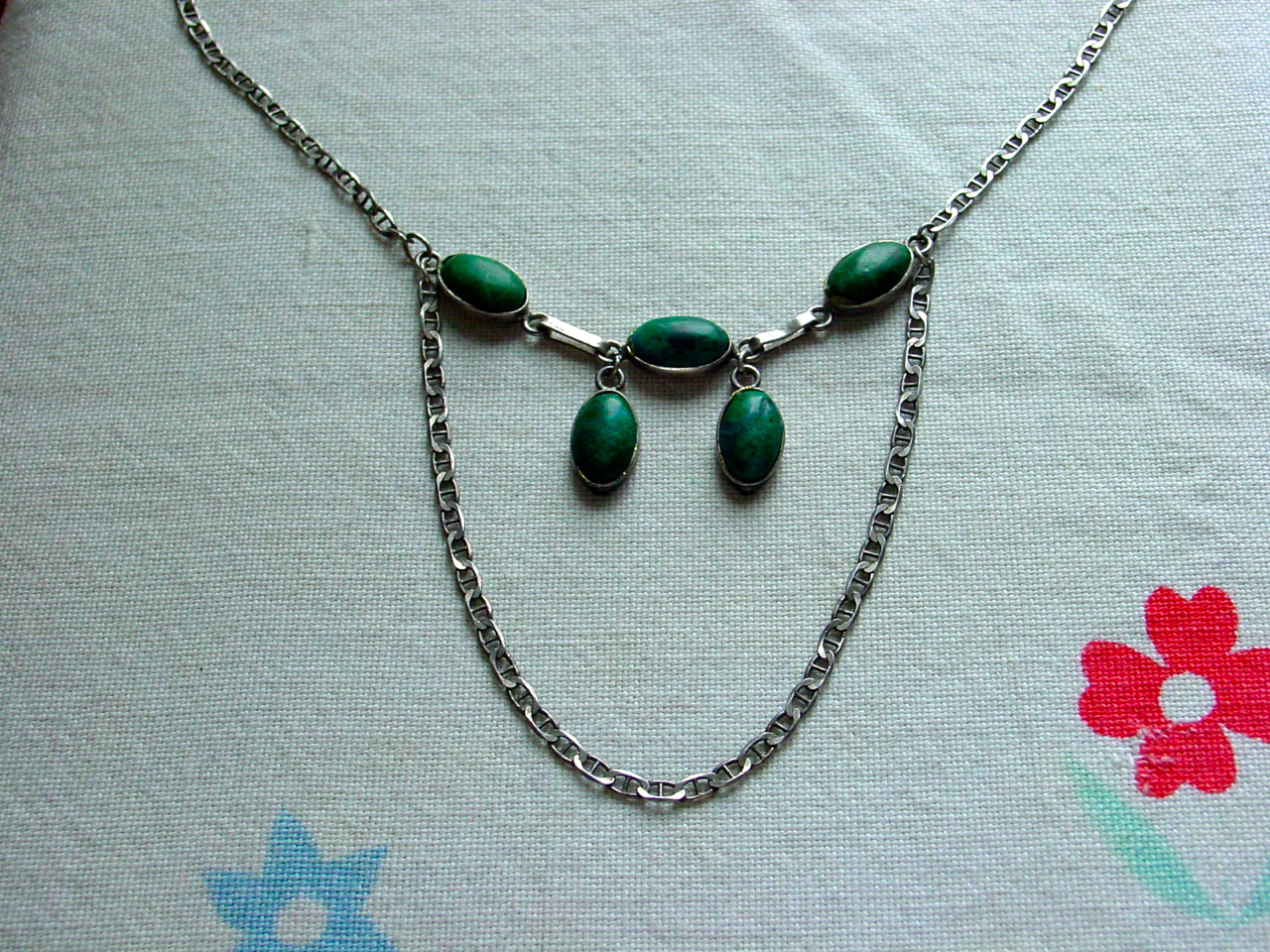 I have finally reached the level of decluttering where I’m actually finding stuff I thought was long lost. Like this turquoise necklace I made out of a broken chain and bracelet!