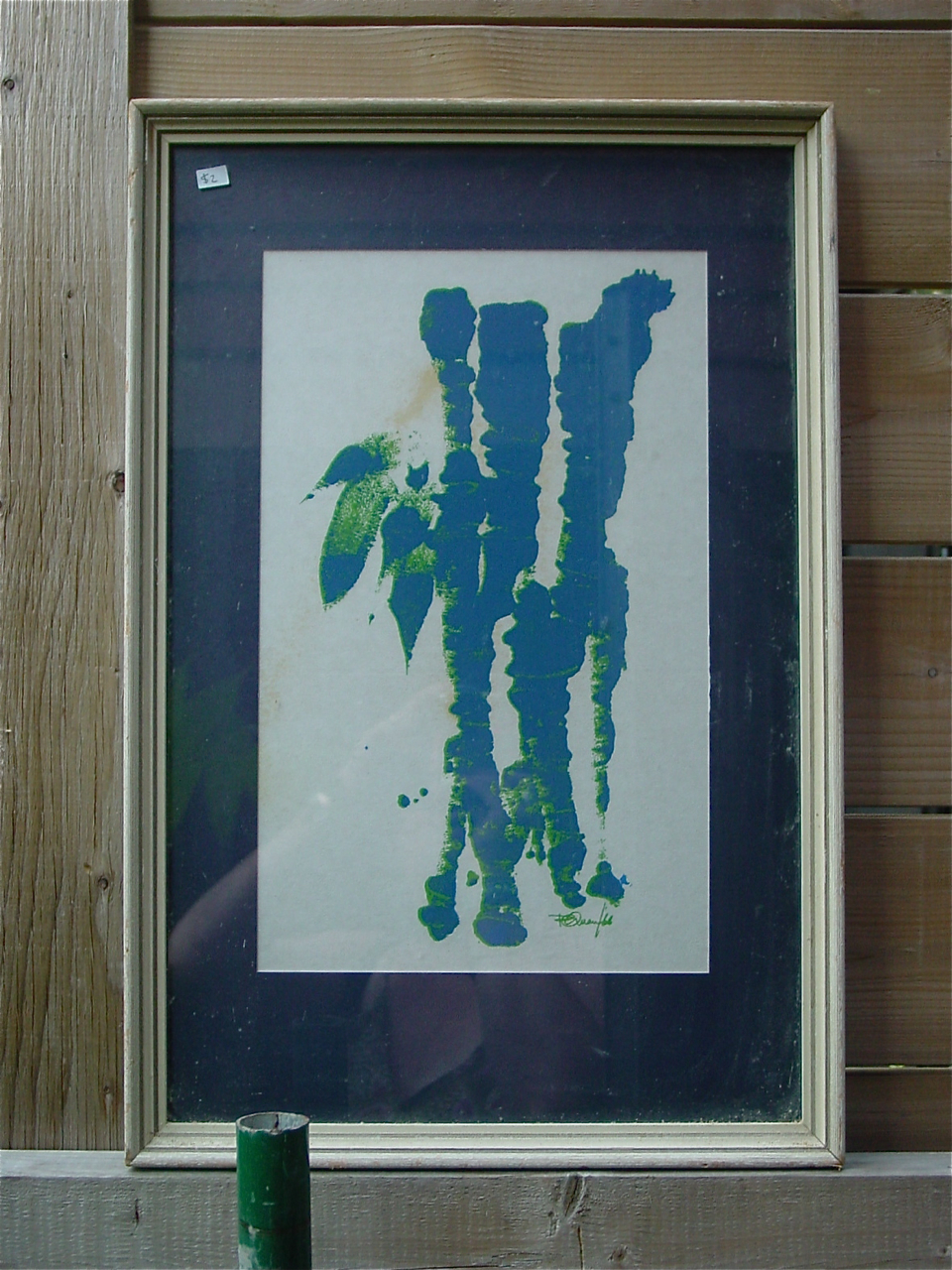 And a print that looks like someone took some bamboo and pressed it against some paper. So I thought it was appropriate to take a picture of these arts in our backyard, which is currently overrun with bamboo.