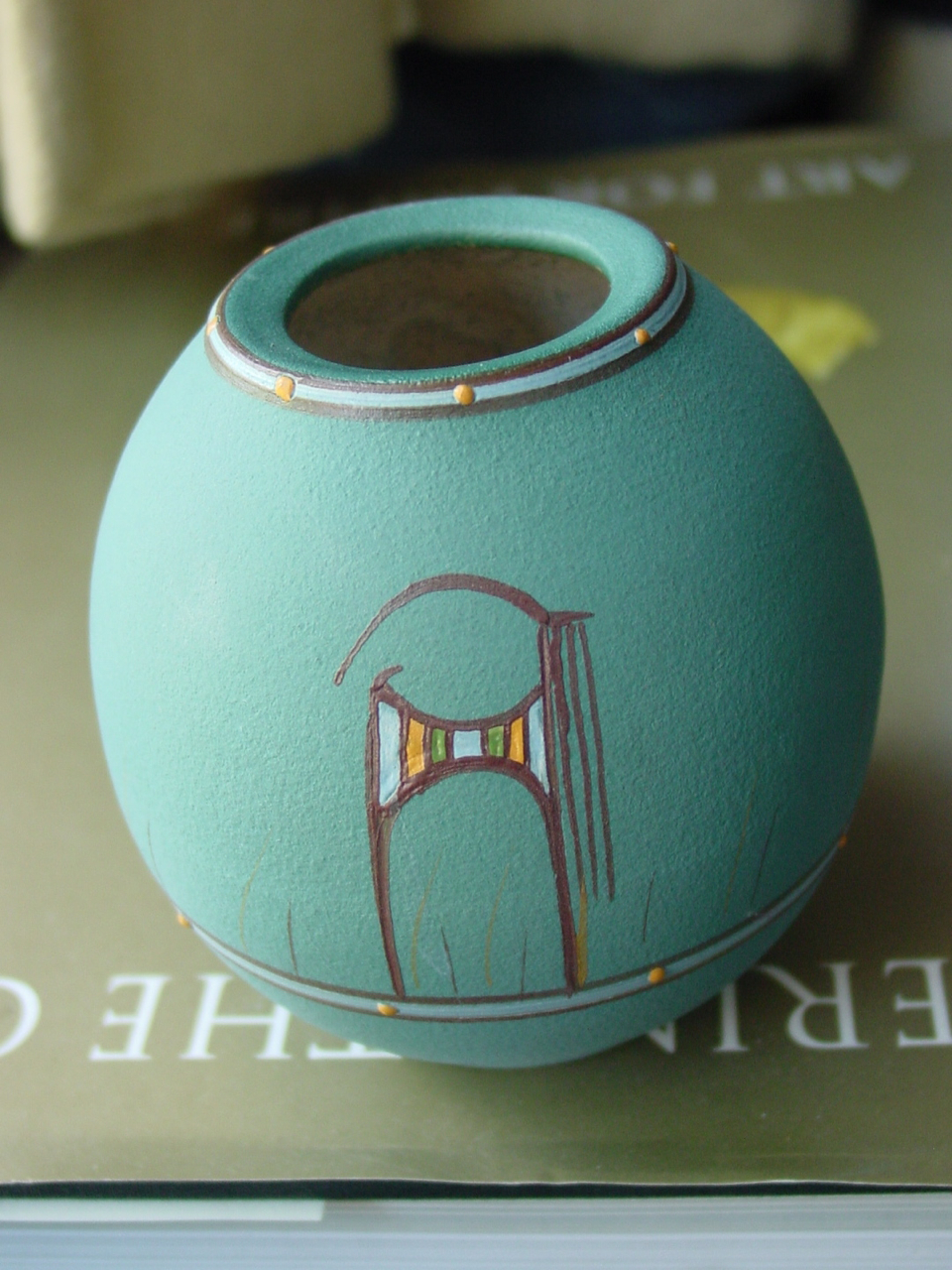 Another Salvation Army find: A wee Southwestern style vase. Again. I love these handpainted vessel — the flatness of the colour almost glows!