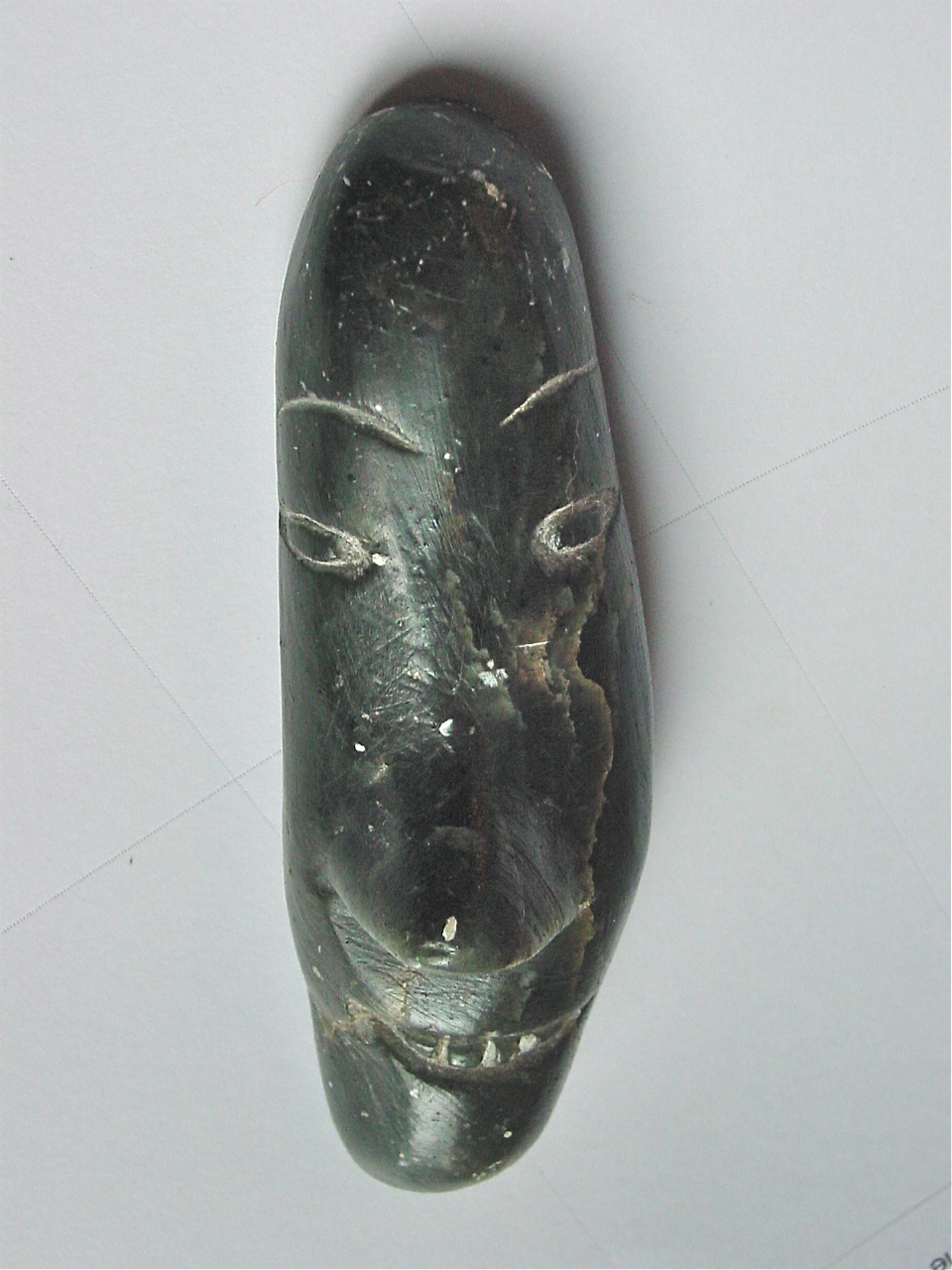 I found this happy fellow at the Junction Flea last Sunday. It is dated 1975 and signed in syllabics which I can make out to read “Qumaluk. Now the Qumaluks are something of artistic dynasty in Povungnituk, Quebec. I haven’t been able to crack the rest of the sylabics to narrow down who the artist is. I love a good research hole so I am happy to invest the effort. I also want to build an armature so this guy can stand up and look around. In the mean time, I will just enjoy this happy face.