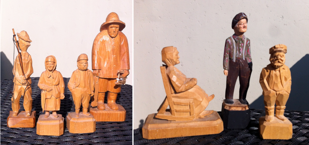 I finally got around to photographing my dad’s collection of folk art wood carvings from Newfoundland and Quebec. They are all small-scale, bit they have big personalities. I haven’t really had a chance to research the artists, but I wanted to share them anyway.