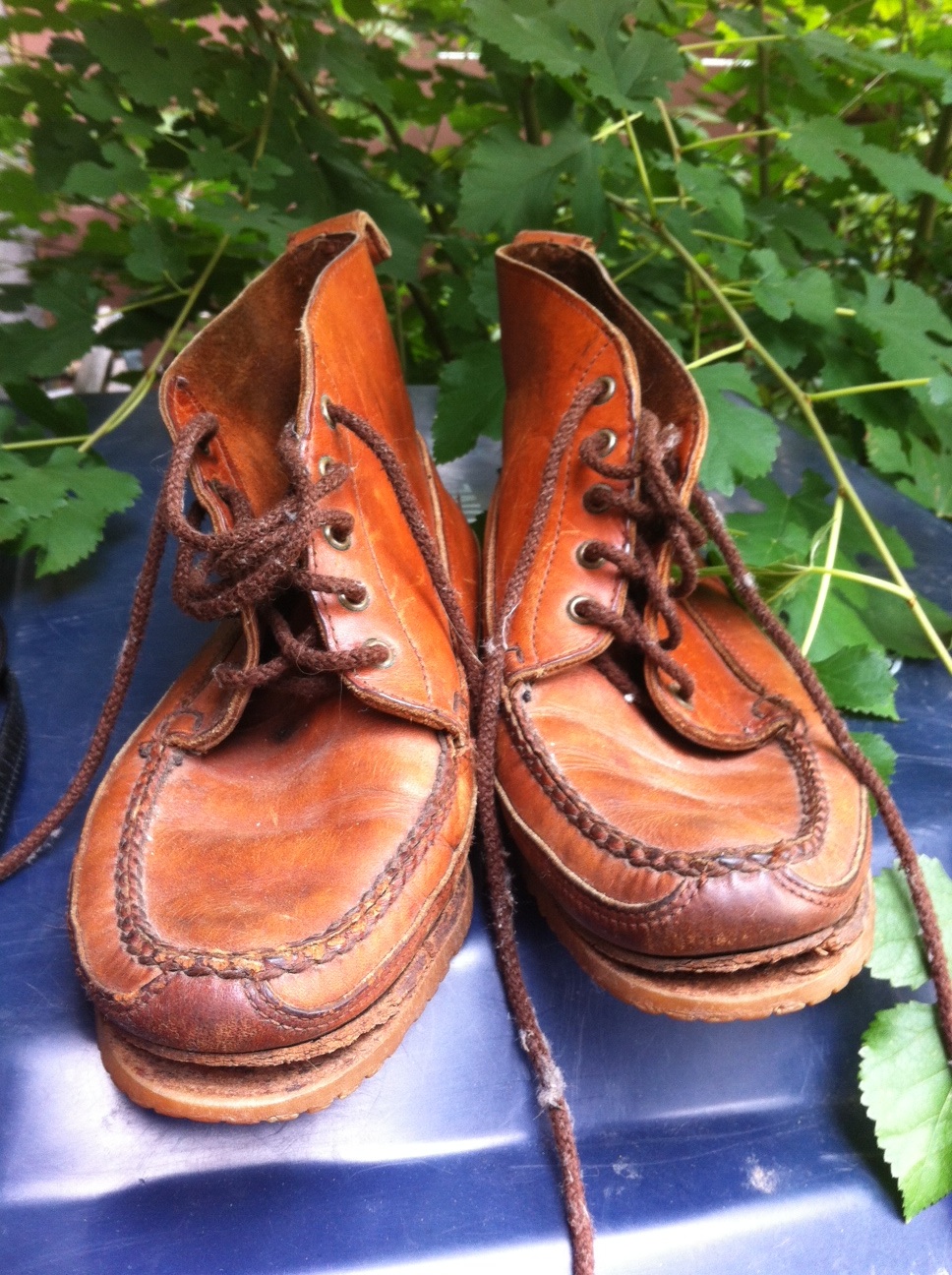 I found these boots on the sidewalk. They are nicely made and the Vibram soles are not very worn. The sole was just separating from the insteps. I fixed them up and now that fall is on its way, I am going to wear them. Thanks providence!