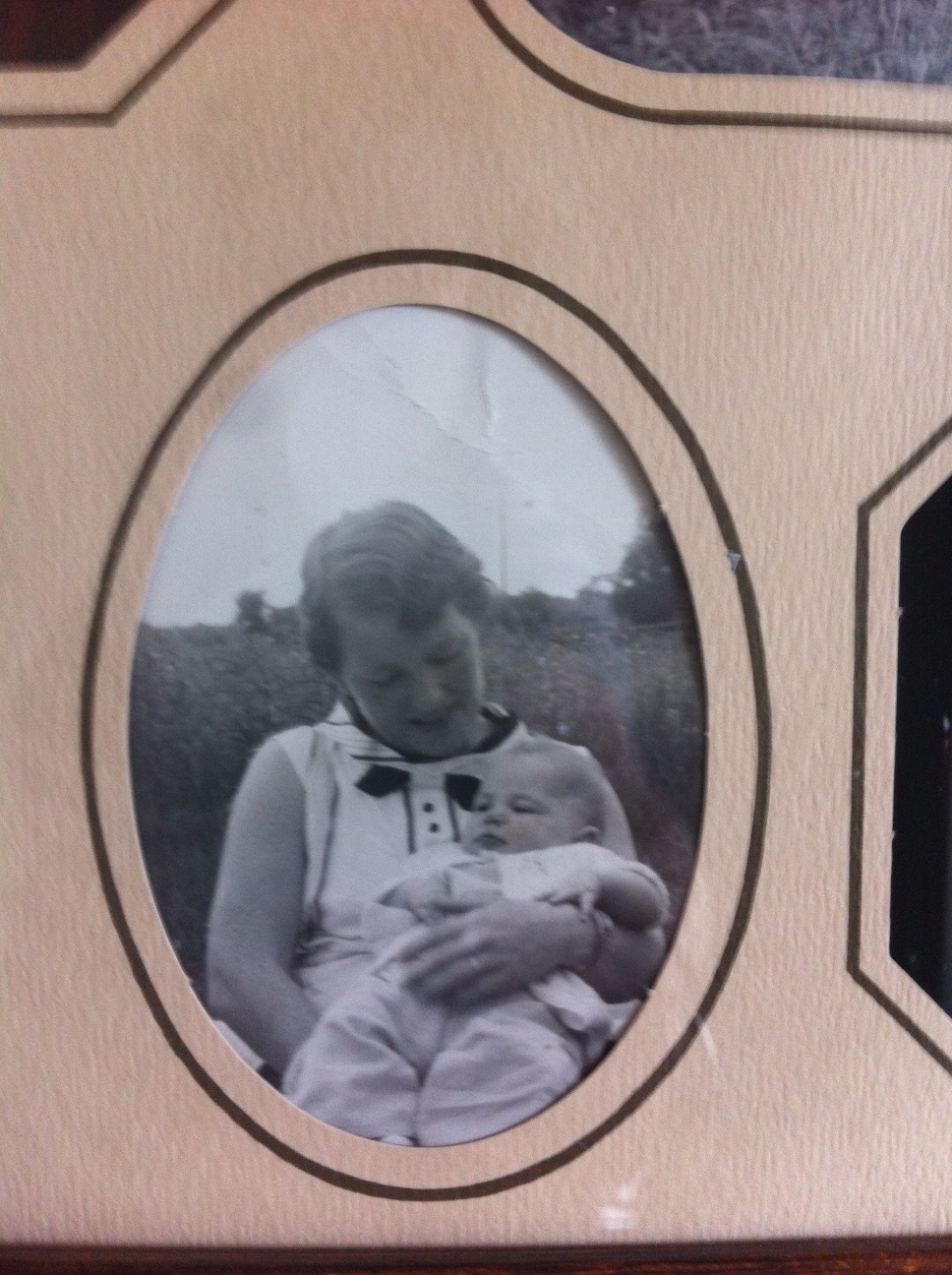 I was visiting my Aunt Mimie the weekend before last. I fell in love with this photo of her with my cousin Bob as a baby, which would make this 1949 or 1950 (Bob was the last of the pre-confederation Riches). My Aunt was just in her 20s then. I love the collar on her dress and the wave in her hair — and even though the picture is in black and white you can just tell she’s a redhead!