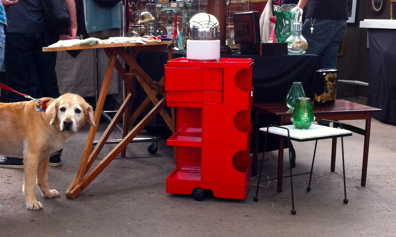 At the Junction Flea at the Brick Works last Sunday, this classic red Boby Trolley Cart, designed by Italian industrial designer Joe Columbo (1930 to 1971), sat across the aisle from us all day. Alas, we were there to downsize, not to accumulate. Plus we didnt;t make close to enough money to meet the $300 sticker price.