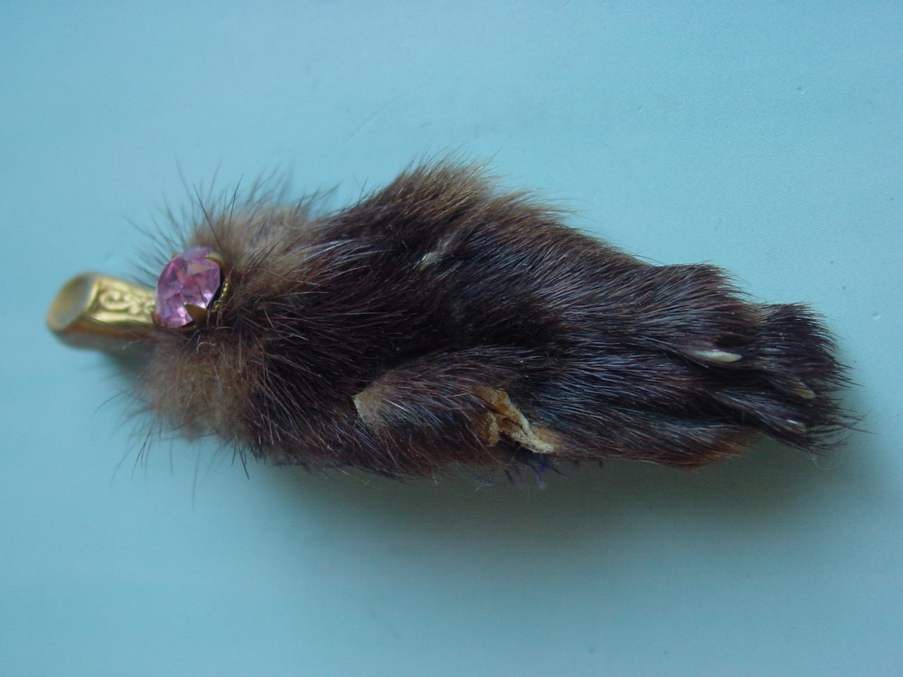 Now that Thanksgiving is over I can finally start celebrating the most important holiday of the year — Halloween. Let’s kick off the creepy season with this disturbing kilt pin made of a mink’s foot. My grandfather was from Scotland and as such I grew up with grouse footed kilt pins, but this is the first mammalian paw I’ve ever come across.