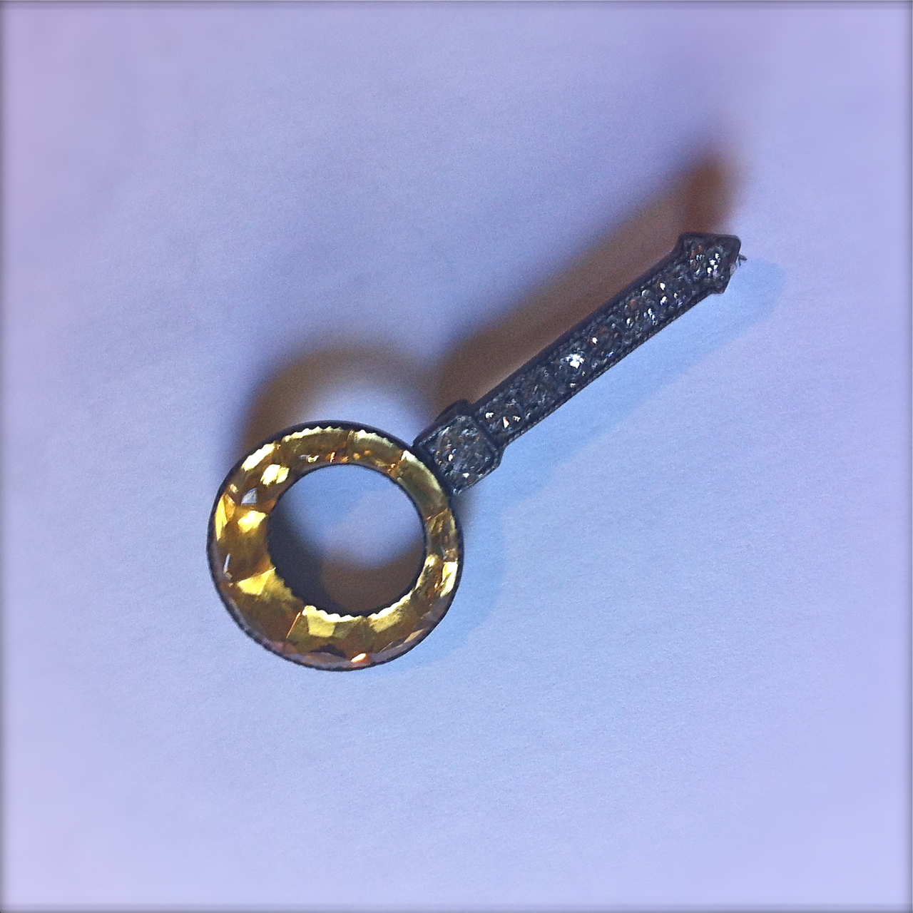 Here’s a pin I found a couple of weeks ago at the St. Lawrence Market. I believe it is an example of what is called a Halley’s Comet brooch. It’s basically a catch-all term for a piece of jewellery with a round “fireball” element plus a long “tail” section.