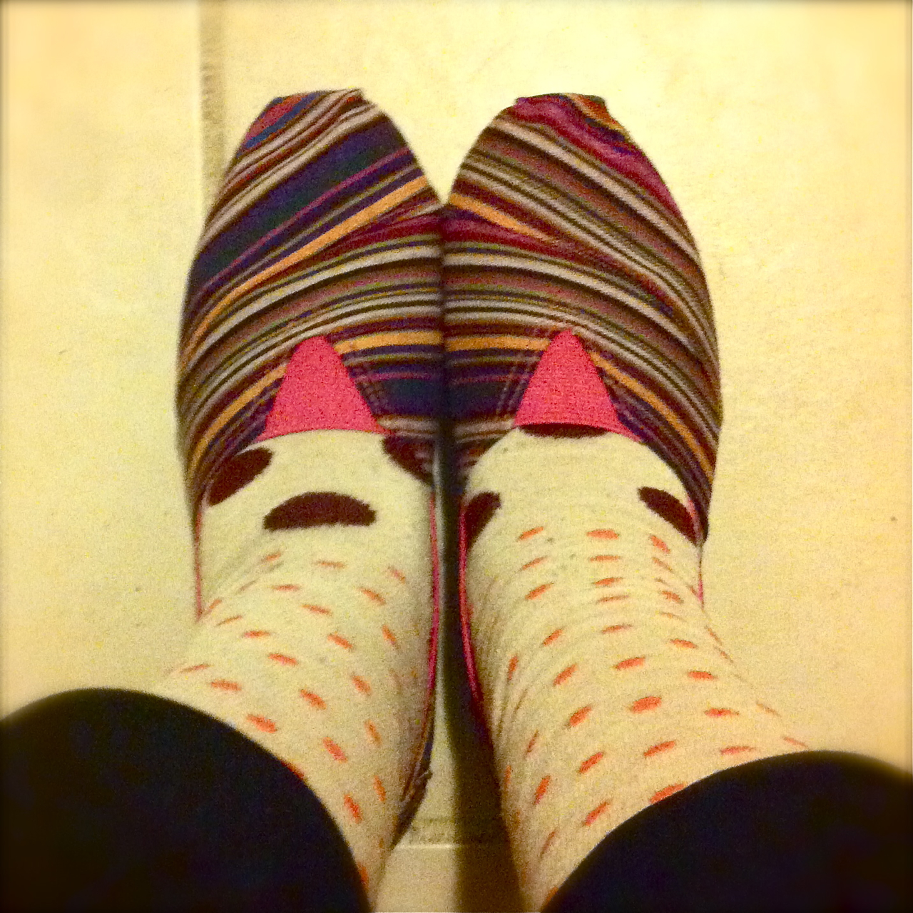 A couple of weeks ago, I was in the Dollarama to purchase some stationary (I swear) when I spotted these nice, stripey shoes. It was about minus 20°C and I had a delusional thought that buying shoes that were useless in the winter might coax spring into existence/