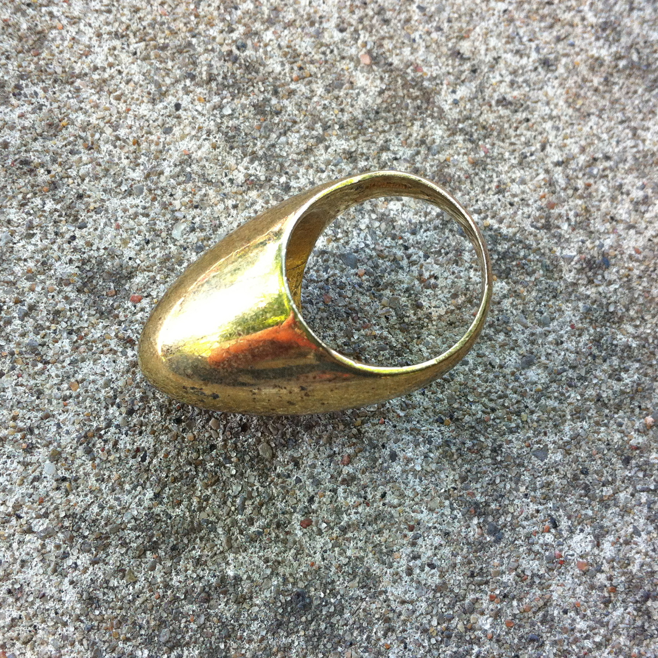 Above: A sterling silver, gold-plated extreme dome ring marked with what looks like a croissant and the initials E.R. Haven’t found any matches with designers on the internets yet, but patience, my pretties.