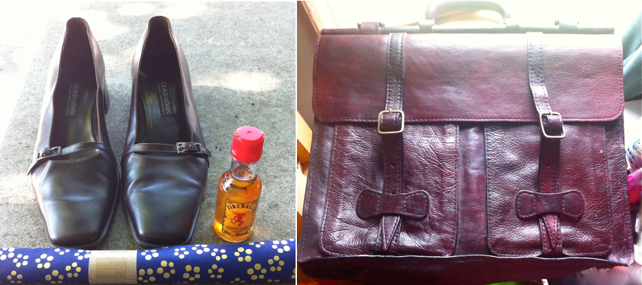 On the weekend, Mr. Andrew and I celebrated our sixth anniversary, which is traditionally celebrated with a gift of candy, iron or wood. Instead, the city of Toronto gave us some great treasures made of leather (a pair of Giorgio Armani loafers and a Cordovan briefcase), liquor (they were handing out mini bottles of whiskey at the Dundas West Festival) and paper (I found a roll of Japanese paper on the road. There was also an SLR camera flash in the briefcase, but I neglected to take a picture.