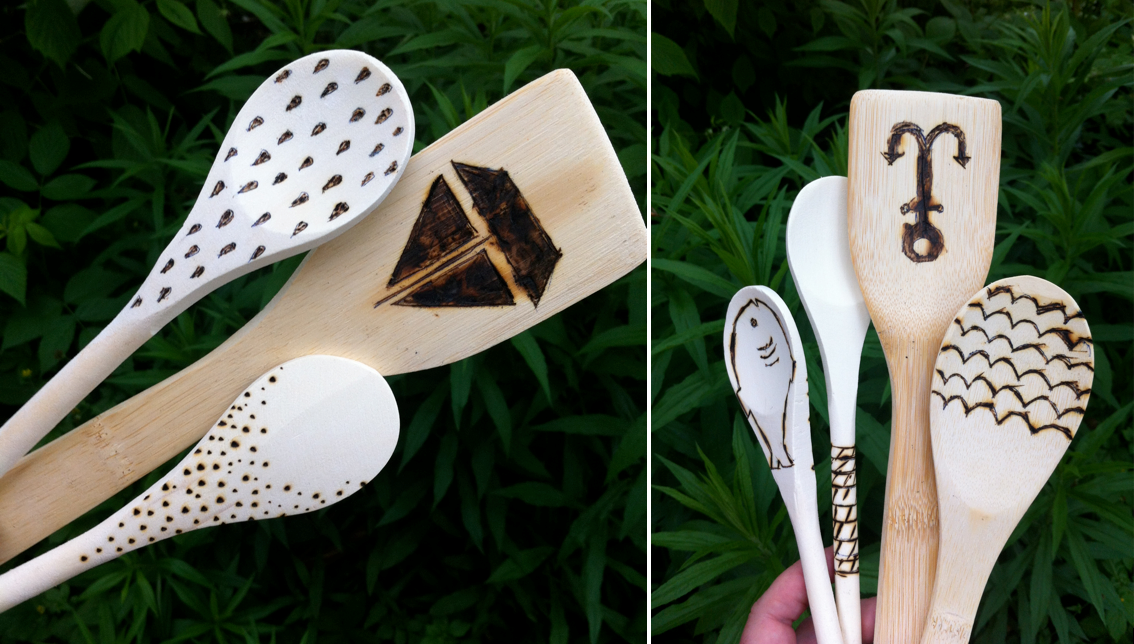 I’ve also been experimenting with wood burning on wooden spoons. Specifically, I am making them for niece Sarah’s house-warming present. She has a bit of a nautical theme going on for backyard. I am not fully pleased with the outcome, so I may just stick to stripes and dots. Or abandon the idea entirely and make rope coasters instead.