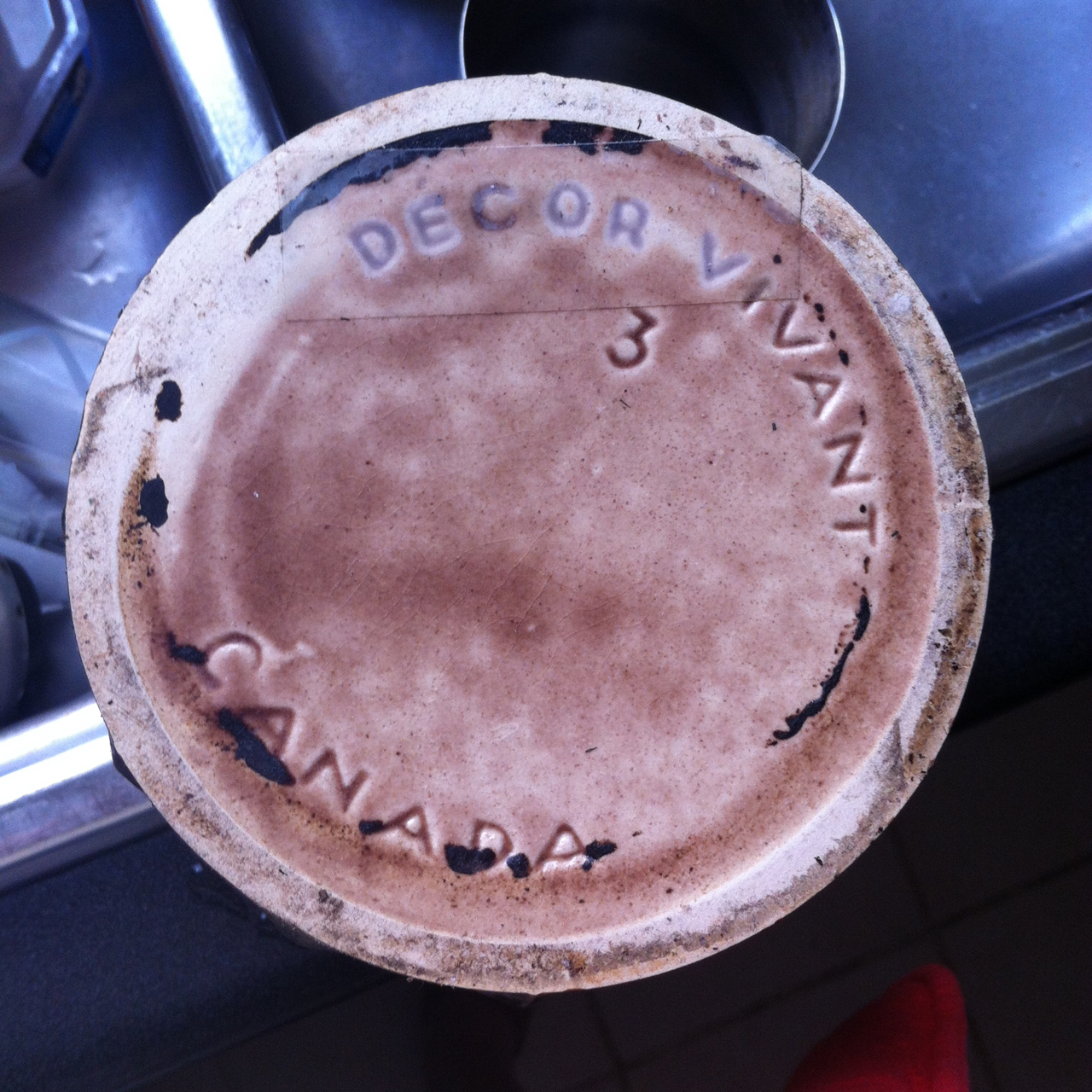 Because I know so very little about ceramics and pottery, always exciting when I come across a piece — like this planter — that is marked. In this case, the underside is signed Decor Vivant Canada.