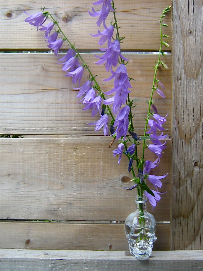 Mr. Andrew found me a travel-sized, empty Crystal Head Vodka bottle. Because he has heard me talk about buying the full-sized version just to use as a vase. Because he knows me. I think it makes for a lovely little bud vase for field flowers.