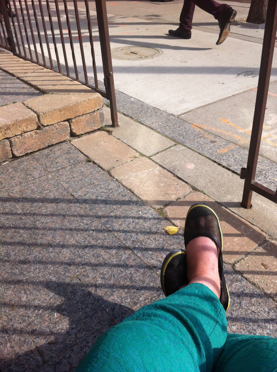 What have been wearing to the Toronto International Film Festival fêtes? This is a question that no one has asked, but I will tell you anyway. Since any party I’m attending is as a reporter, I aim to fit in without becoming part of the story myself. Like a guest at a wedding, you need to be dressed up without distracting from the bride. So for daytime events, I’ve been sporting fancy pants and basic black tops and sensible shoes. For night-time events, my taffeta skirt from Joe Fresh has been getting a lot of action. For the Armani party I paired it with this grid-patterned crochet Style & Co. pullover that I got on super sale at the Bay. It’s a simple silhouette that’s easy to pimp — just add an extreme evening bag like my metallic silver Thierry Mugler clutch and you’re in like Flynn.