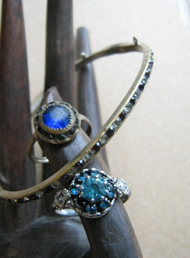 But every hardship reveals something beautiful. An act of kindness by a friend, a family member or even a total stranger can make my day. And even though my parents aren’t in good health, they still teach me new things (more about that tomorrow). Which is why I’m sharing these beat-up old art deco jewels with you today. Even though they are careworn and/or missing bits and pieces, I can still see some sparkle in their stones. And I can see the thought that was put into their design. Most importantly, where the gilt has been worn away, I can see that they have been well-loved.