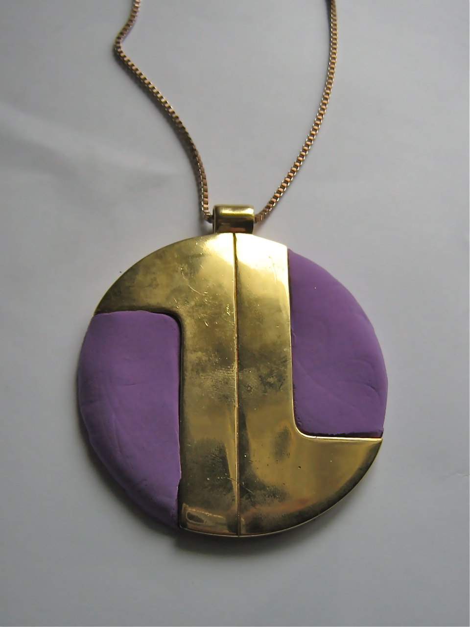 While I was in the craft aisle of the Dollarama, I discovered a Crayola Magic Clay kit. Magic Clay is a marshmallow-y compound that air dries into a solid substance. Since I am forever trying to craft a replacement disc for my Lanvin-esque D’Orlan Pendant necklace, I thought I’d give it a try. I choose purple in honour of Prince, who was supposed to be playing a secret show here in Toronto last Tuesday. I like the flatness of the surface, but I still think I’d like to make a wooden plaque as a permanent replacement.