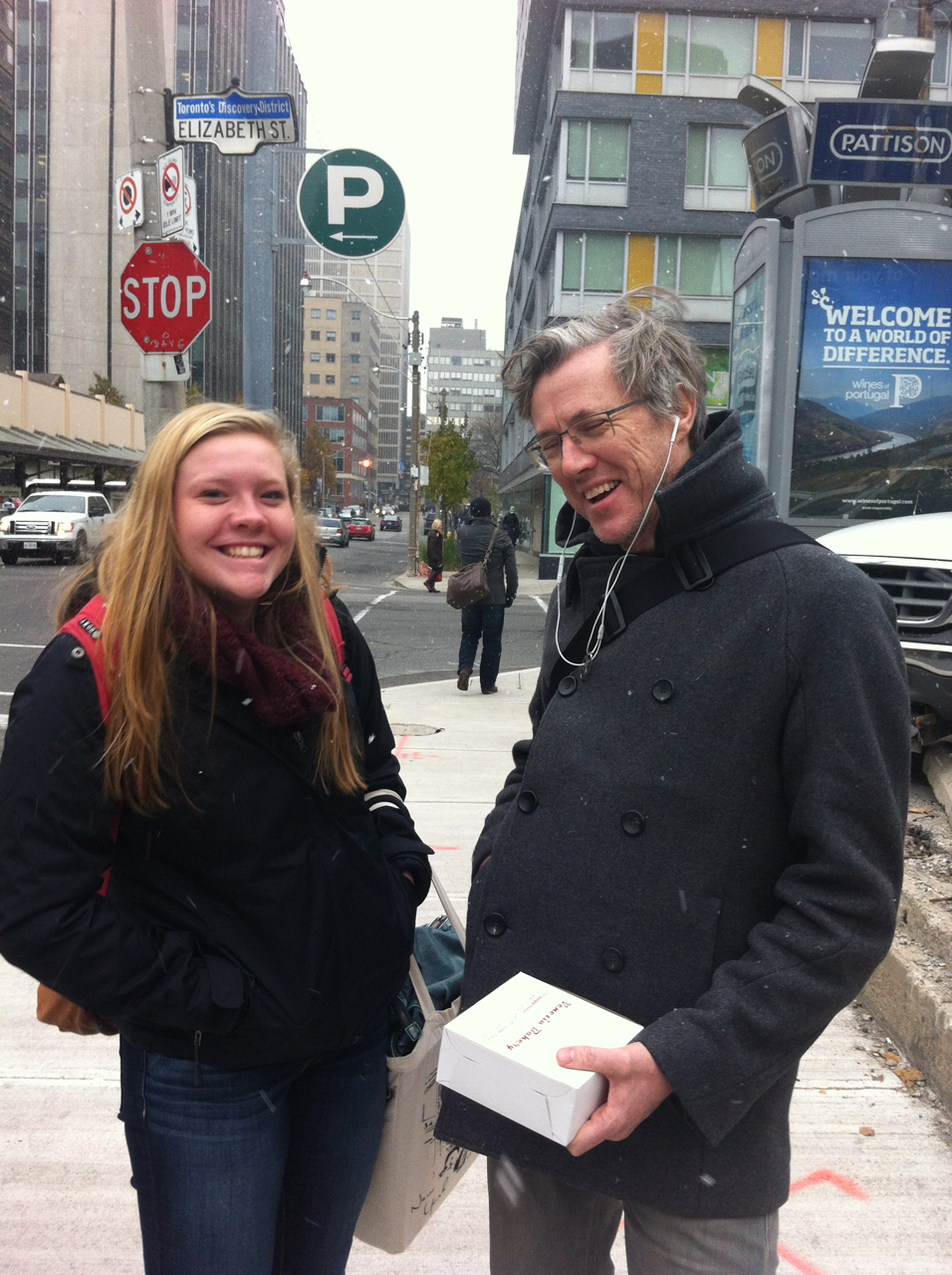Here is my bae, Mr. Andrew (with my niece, Madison), modelling his latest purchase from Sydney’s — a lovely grey wool pea coat. He is also showing off a box of egg custard tarts from Venezia Bakery on Ossington.