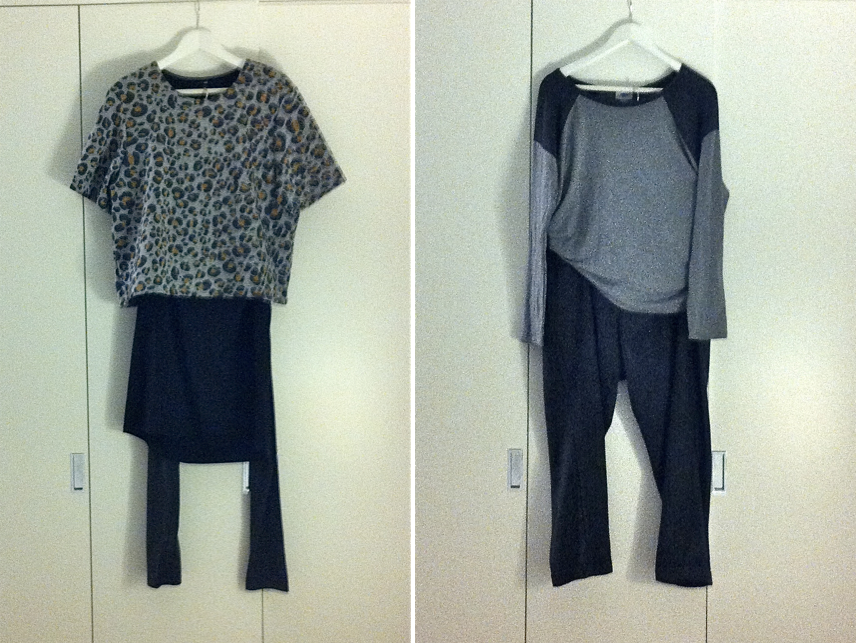My own personal look for Dresden was influenced by minimalism — both in form and function (I like to limit my luggage to a carry on and basics take up less room). Before I left, I picked up a pair of faux wool trousers and a grey top from Old Navy (Not that thrifty, pictured above right)). When I got there, there was a change in plan that required the purchase of an extra outfit. I hit the sale rack at the nearby H & M and got a tube skirt (5 Euros) a faux neoprene leopard print top (3 Euros) and a pair of leggings (10 Euros).