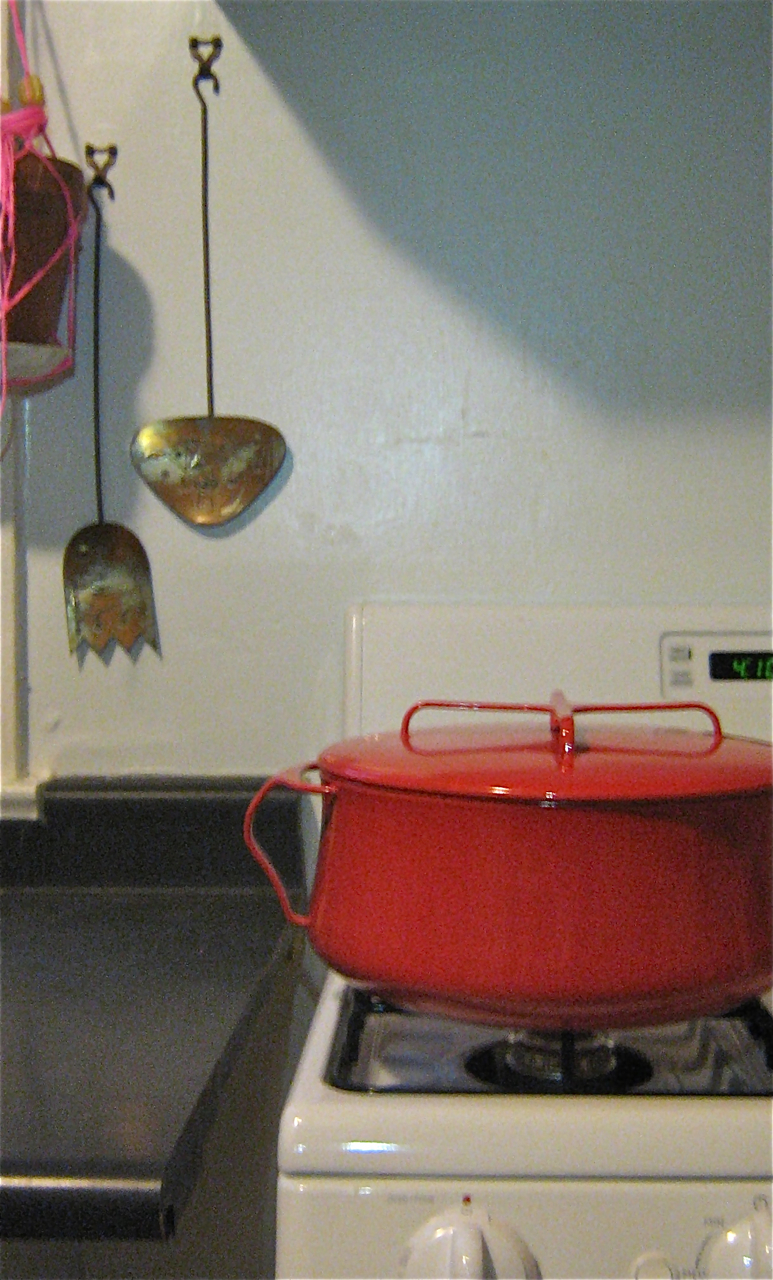 Here’s another item I’ve had on my grail list for a long time: A an example of Jens Quistgaard for Dansk Kobenstyle enamel cookery. It’s not particularly valuable as Dansk has reissued the series, but I can’t afford the new versions and the vintage examples are harder to find than hen’s teeth. But I was able to pick up this big red beauty at the Salvation Army for just $5!
