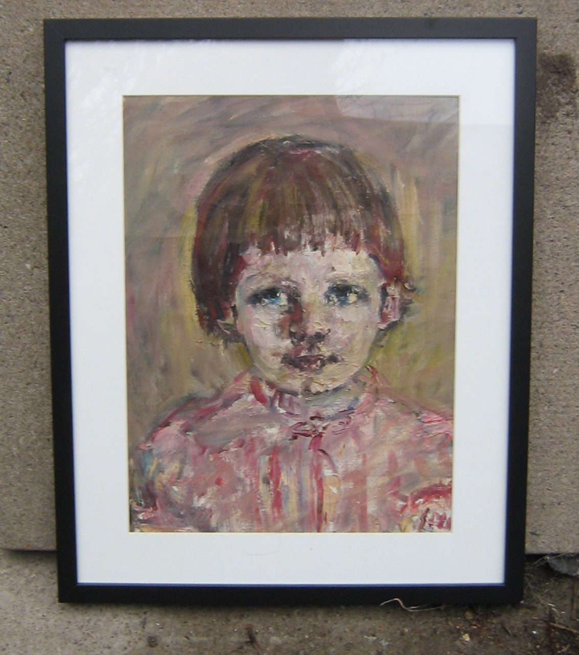 And finally, when we were helping my parents move, I found this painting they had commissioned of my sister Kim when she was little. Kim said she didn’t want it so I rolled up the canvas and brought it home. I found the frame and mat at a contents sale a neighbour was having and now the picture is hanging up in my office.
