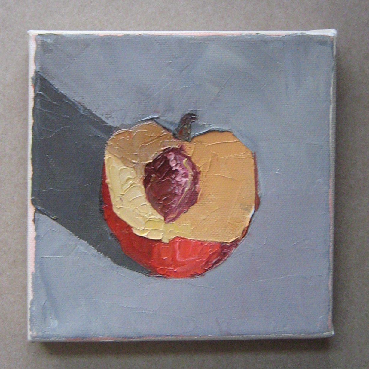 I somehow managed to acquire some more art since I posted my year-end wrap up. For example. I picked up this lovely oil painting by Rossana Dewey at Hashtag Gallery‘s annual 4 x 4 sale. I saw it a few weeks ago and couldn’t stop thinking about it (the nectarine is my favourite fruit). The gallery extended the sale and I thought that it wouldn’t still be there but it was and I took that as a sign and now I have an art.