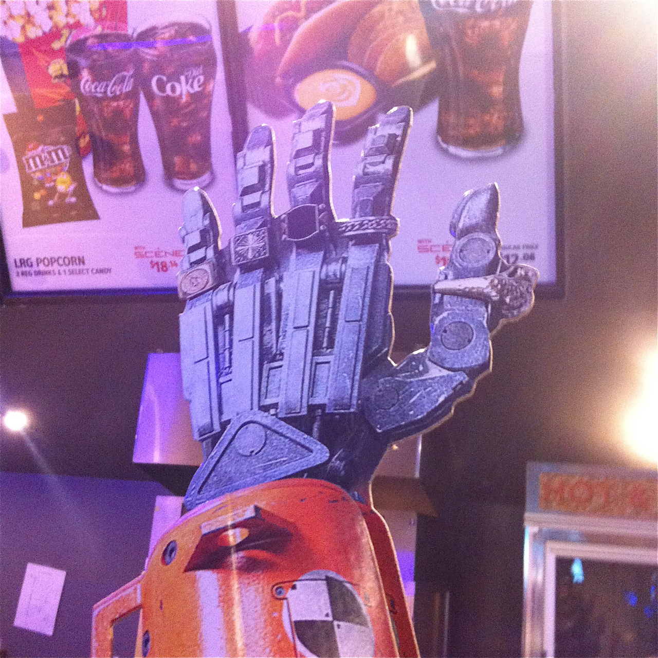 I enjoy it when fellas get their peacock on. Which is why I too a picture of the standee for the new film Chappie. I like that the robot protagonist is wearing blingy rings to signify his scrappiness.Not having seen the film, I don’t know how the mechanical man has come to own these baubles, but each nods to a certain subculture. For example, the sovereign ring is quite fashionable in British Chav culture. The other rings make nods to bike gangs as well as rock and roll style — wearing rings on every finger is so Keith Richards.