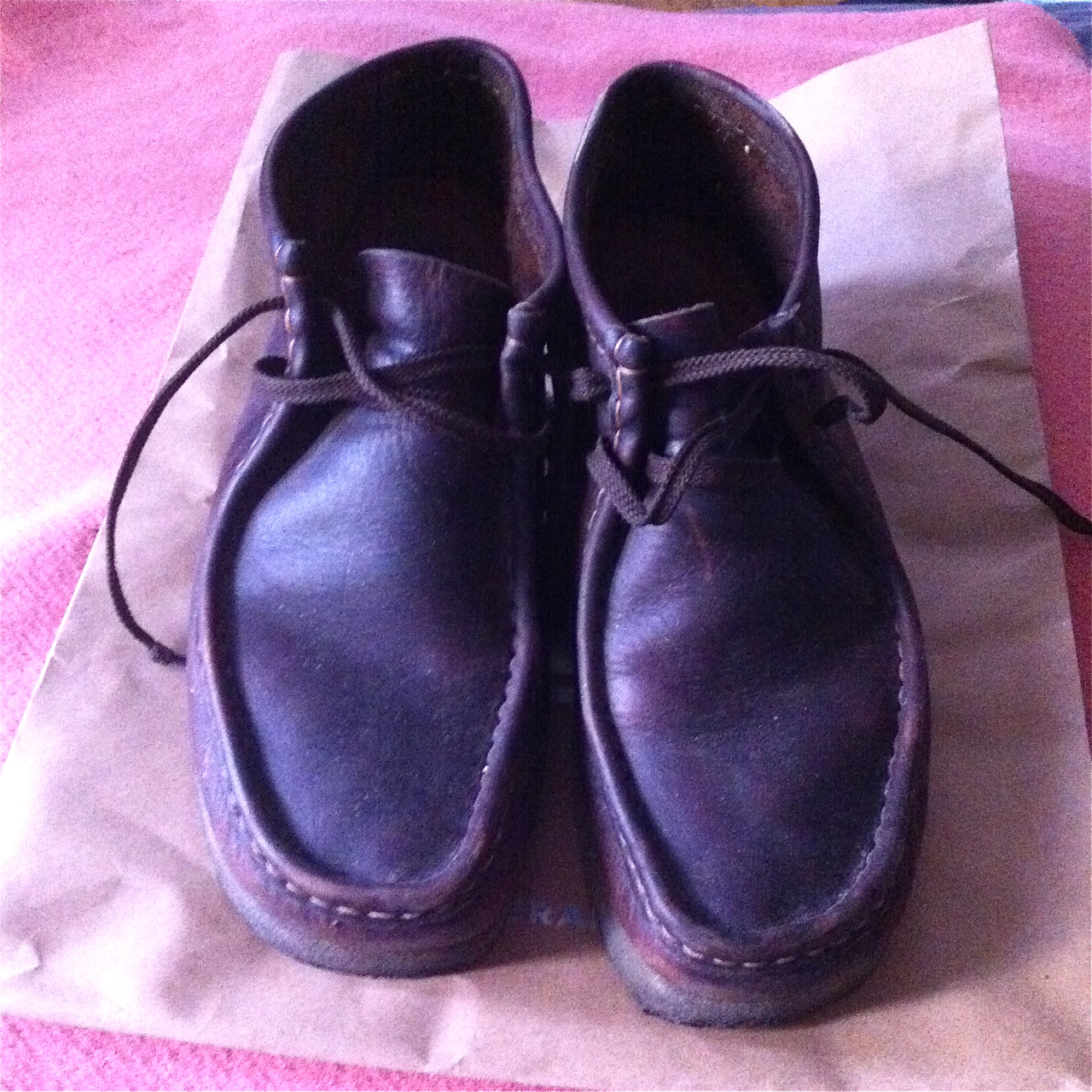 I also came across two crates of mid-1970s funk and soul 45s. They were all New Old Stock but most had bad storage issues. I salvaged the ones that looked playable. When I came home and looked up the tunes on YouTube, I decided to go back for more. When I returned, there was a barely worn pair of Clark’s Wallabees in a Drake General Store bag. And even though I said last week that I was swearing off used shoes, they looked like they were my size and would look so cool with some skinny legged pantaloons. So I brought them home.