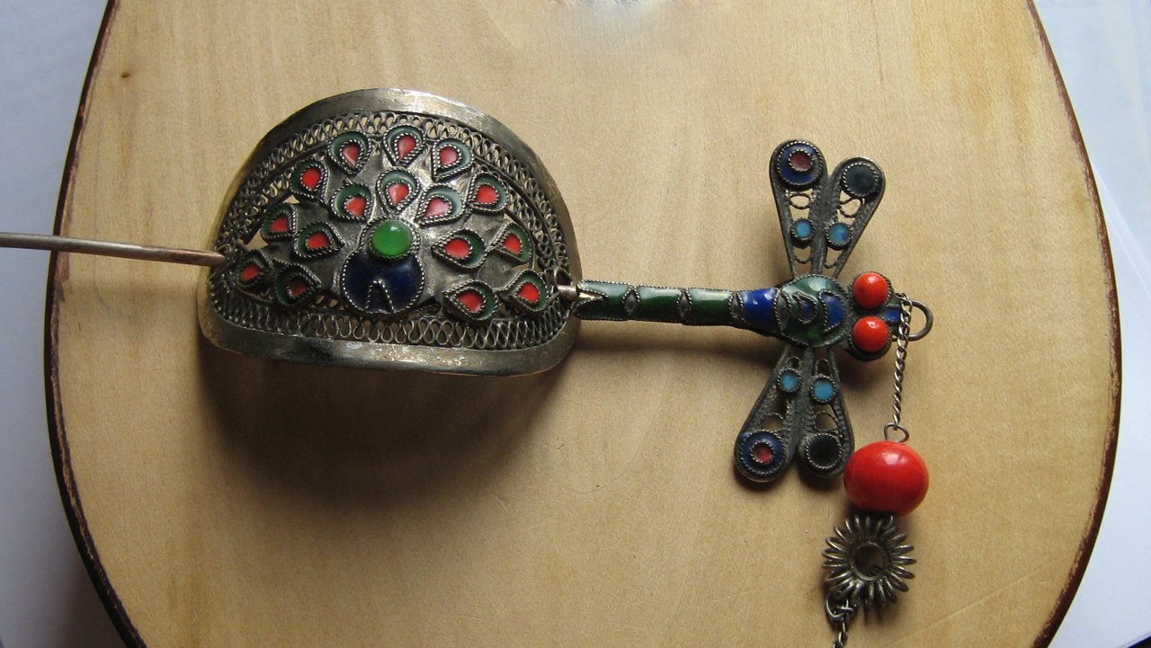I’ve been growing out my hair for at least two years now and its finally long enough that I can finally start playing with hair accessories. So I dug out this rather ornate Chinese Hair Ornament that I bought in Chinatown about 20 years ago. It’s beautiful but the pin part is definitely a dangerous weapon. The brass one pictured below could also double as a letter opener. But still, fun!