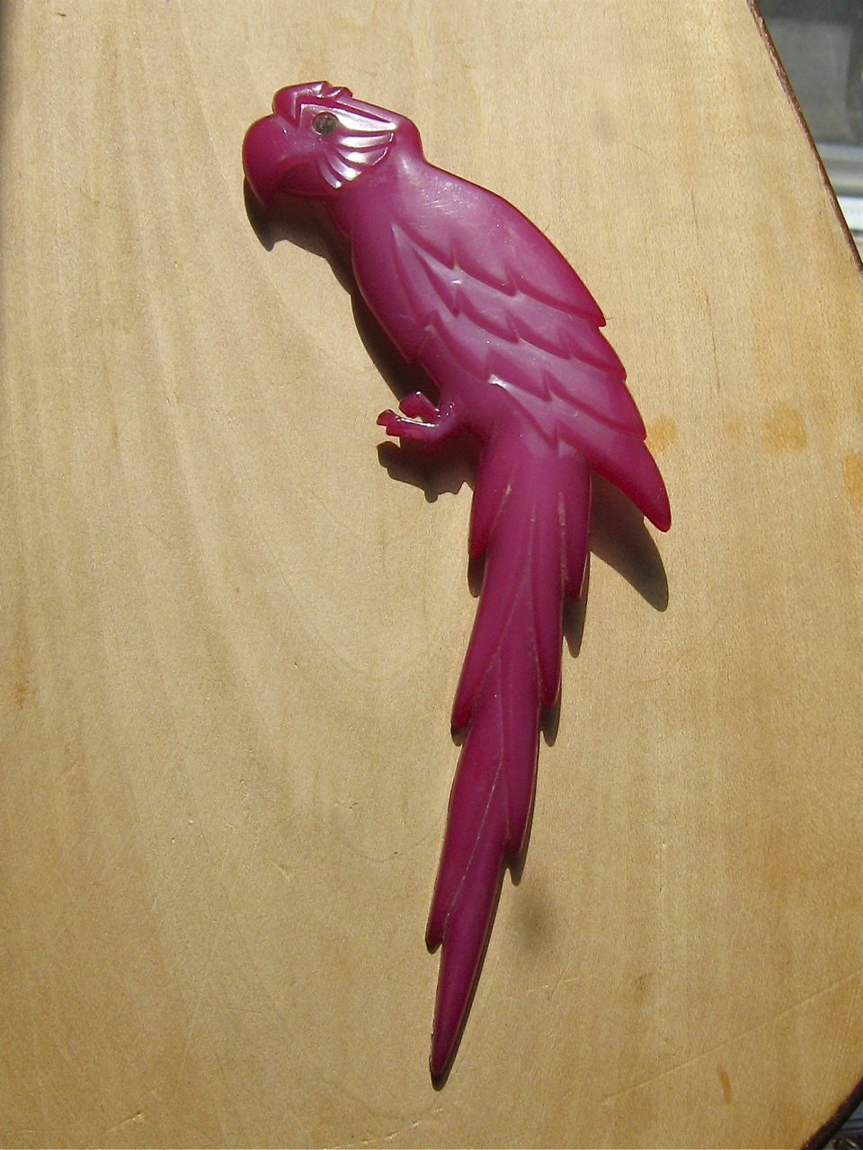 But I bent my rules to bid on this big purple Buch + Deichmann parrot (or is it a macaw) pin. I won it for about $2.75 USD, but was charged $15 shipping on top of that. The seller was very nice, but couldn’t figure how to opt out of the program after sending the invoice. In the end, she (or he) sent it via regular mail but it still soured the experience. I know I’m not alone — a quick Googling reveals how mush Canadian buyers feel gouged by the Global Shipping Program.