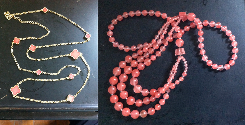 Today I am on my way to Switzerland for work. The day after I return is moving day. Even after purging and dropping off bags and bags of jewellery and clothes to thrift shops, I’ve still managed to accquire new pieces since the staging of the house. It’s just that it’s summer and there are garage sales and they have cute pink necklaces for like a buck.