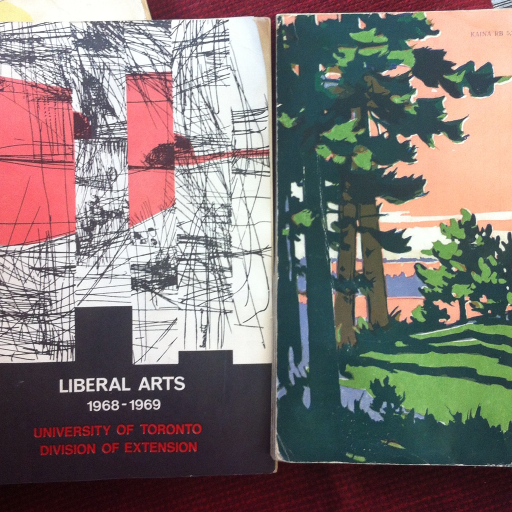 I found a stack of brochures on the side of the road. The cool, late 1960s graphics caught me eye. I scooped them up thinking that I could frame the covers. But because I am still in downsizing mode, I started thinking, does everything deserve to be saved? These tomes have a lot of water damage and while they provided a fun evening of looking at the night school courses that were available at the university of Toronto almost 50 years ago, I don’t really have a place for them here.