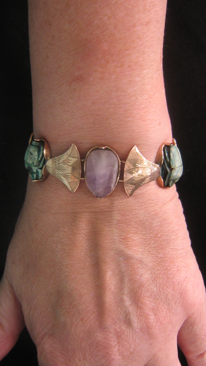 Last week I hot the auction circuit, starting with the Jewellery and Numanistics event at Waddingtons. I went with a mission: to win the lot that contained this fabulous rose gold Egyptian reviavl bracelet. And get it I did, but with a bit of a struggle as at the end of the auction as there was confusion about who actually won it (I thought I won, the guy who was credited as having won thought I won, but the house had recorded the wrong number).