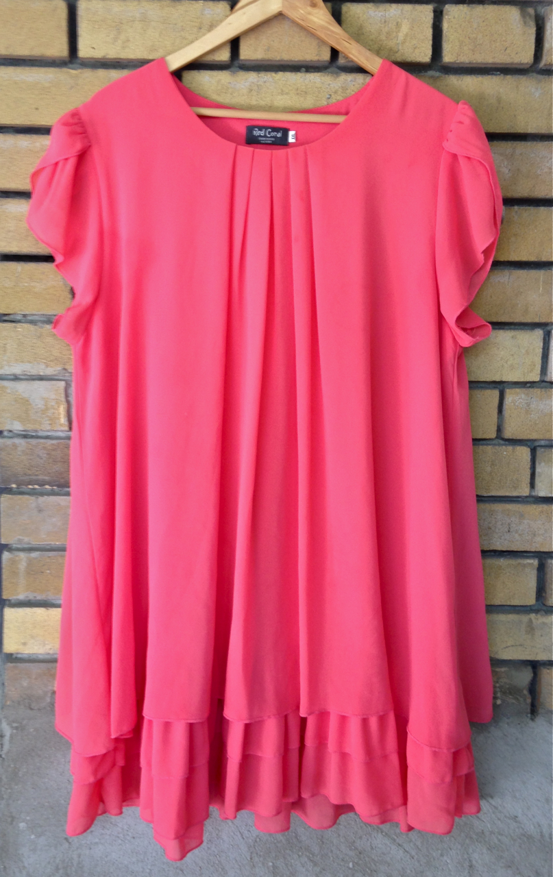 I’ll start with this pretty coral party frock that I got at a neighbour’s yard sale in September. I bought three things from her: this dress and it’s duplicate in black and a hand-embroidered cardigan labelled Chevignon Genuine Hopi.All total, this wardrobe cost me $6.