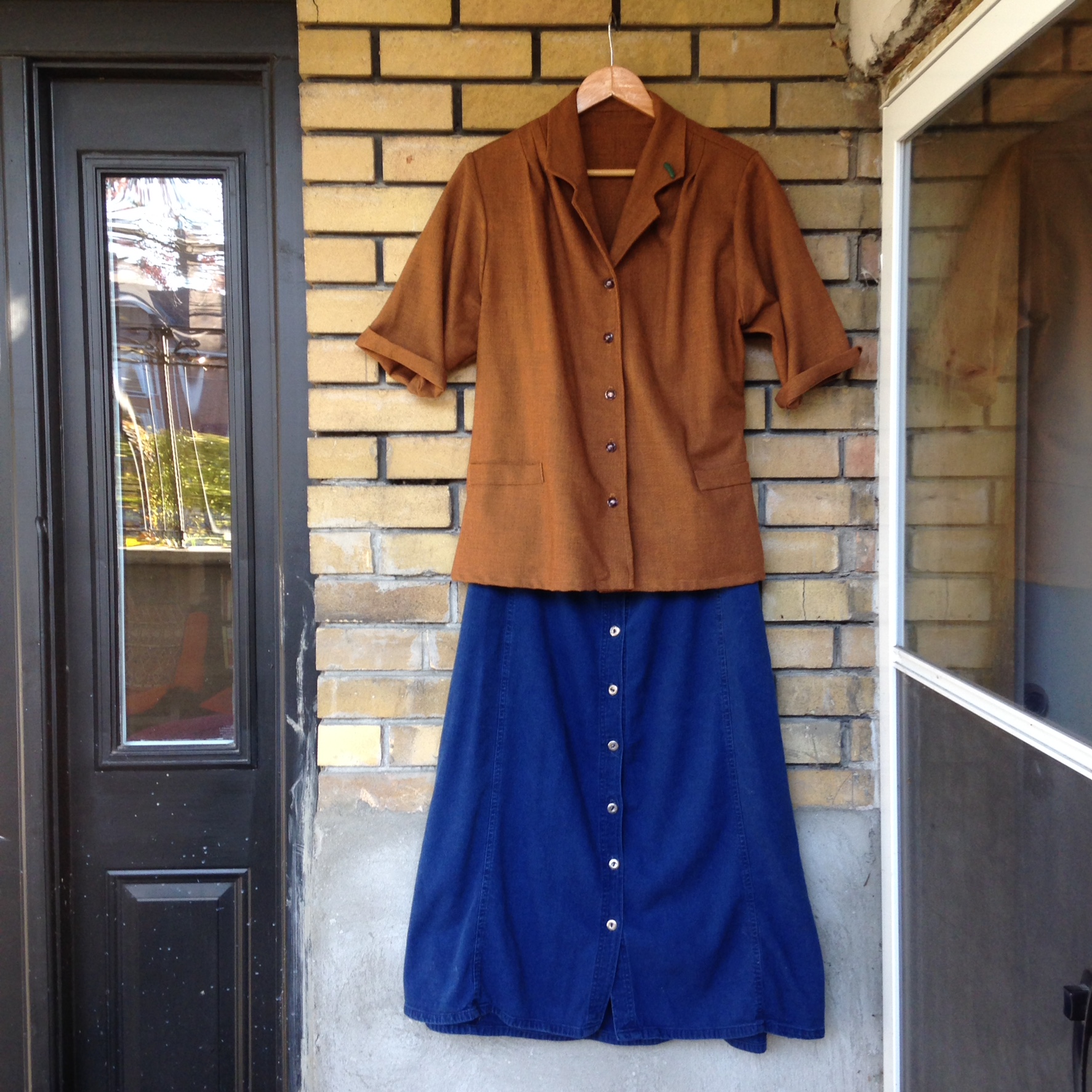 I started October with the best of intentions to not buy anything new and instead, repair or alter the things that I loved but needed TLC. Some things I tried to repair myself (like the button front denim skirt pictured below — it was too big when I bought it and most of the buttons had popped off because the threads were old and brittle).