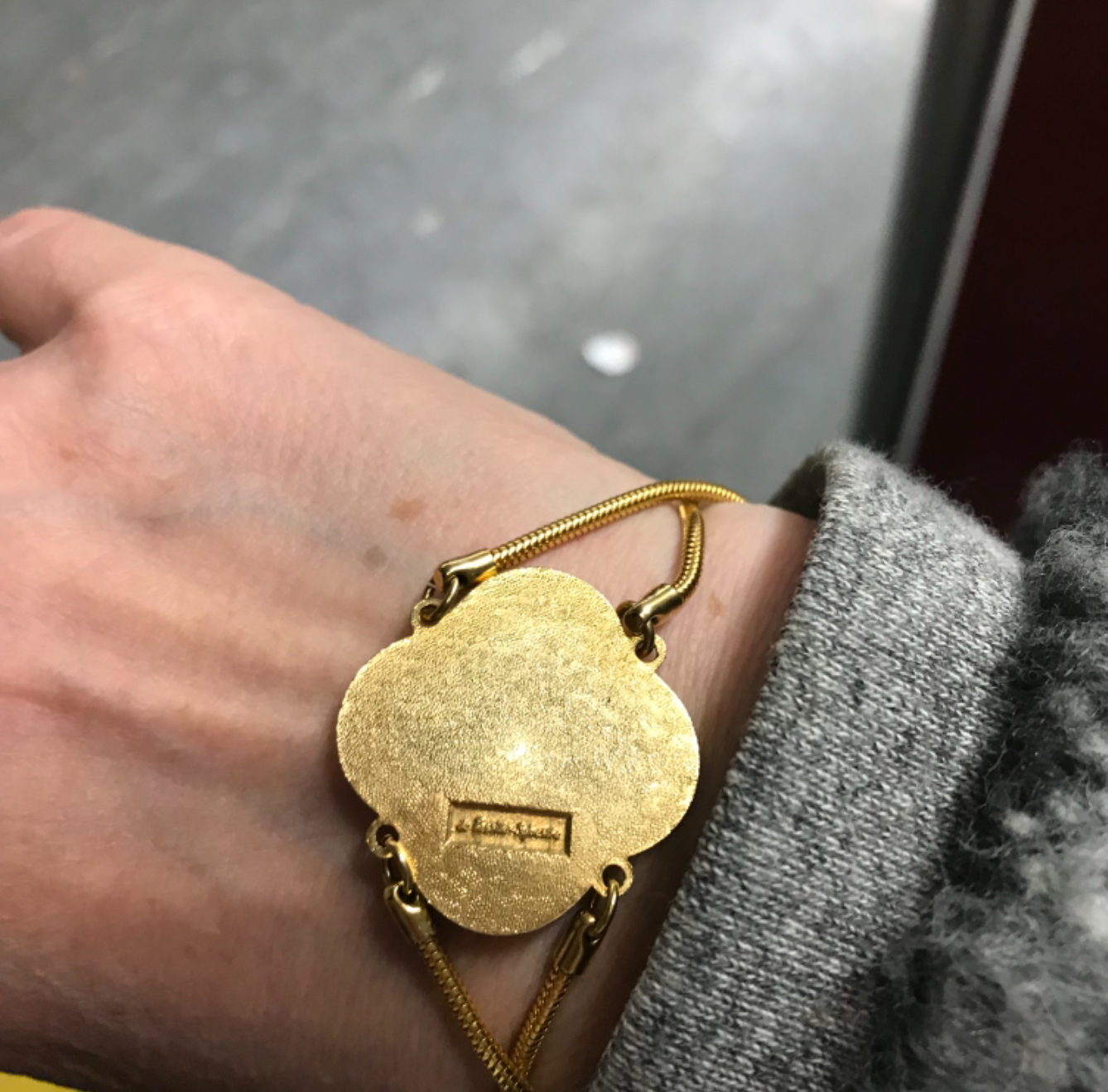 I have more than a few of their necklaces. I even have a belt buckle. and I have owned their earrings. So imagine my delight when I found not one but two examples of their work that I’ve never had in my clutches before: this exquisite bracelet and a cute little stickpin.