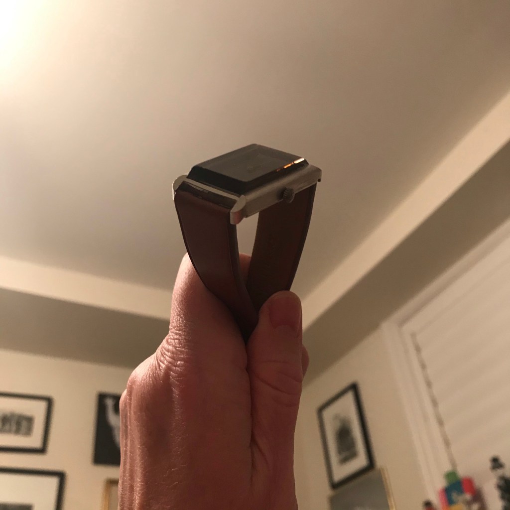 The design of this timepieces rings all my bells. I cannot resist a tank case and this one also has a Enrique textured finish that’s also very appealing. The smoked faceted crystal is also to die for. And the strap, while not original, looks good with “Me Decade“ aesthetic while making it feel very new.