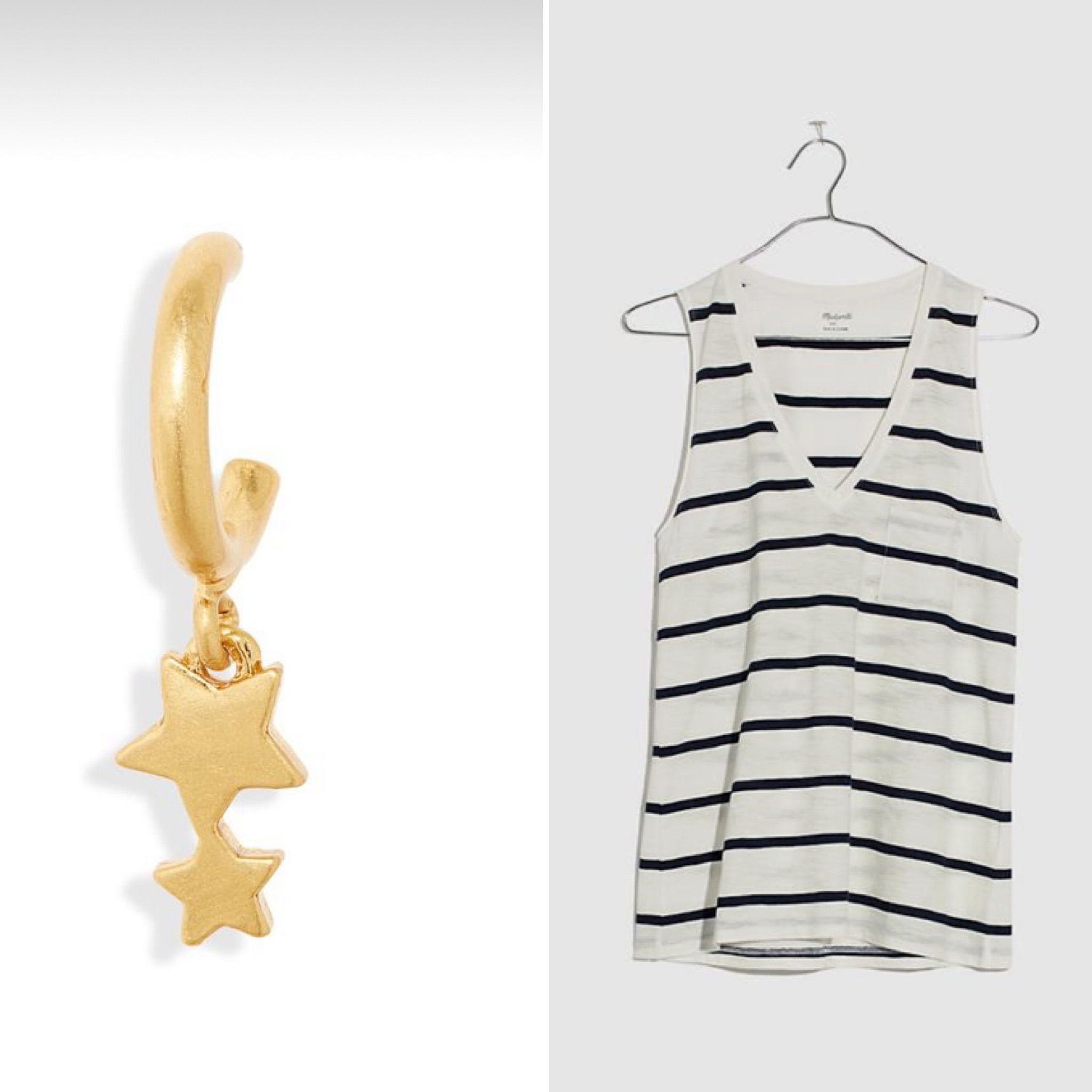 Whilst Mr. Andrew was out of town, I went on a little shopping expedition to the Nordstrom Rack downtown. My friend Katya had just been and reported some great deals. The clearance racks were pretty picked over but I did procure a Madewell tank top for $2.98 and a pair of Madewell star earrings for $5.98. I am a big fan of the Madewell jewelry.