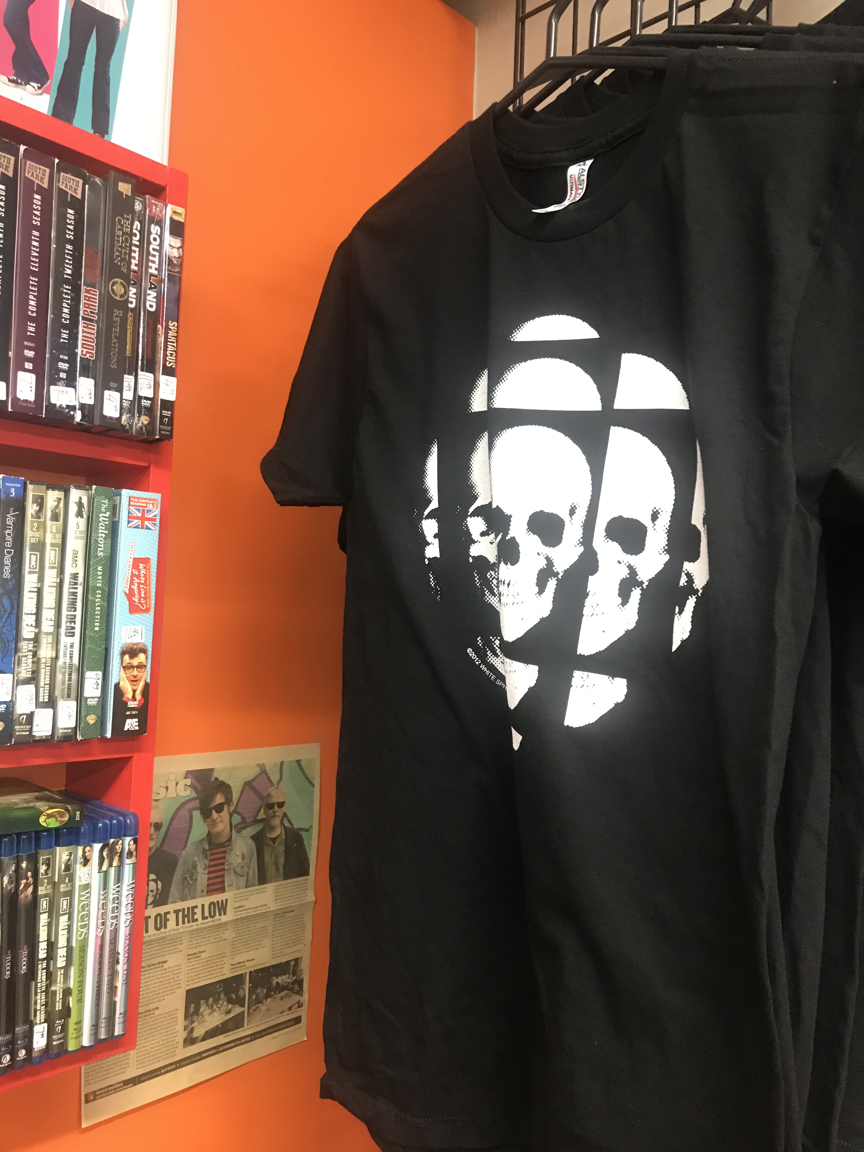 I stopped in at Pandemonium books and records up the street to support local business now that they are reopened. Bought this cool goth take on the classic CBC exploding pizza logo.