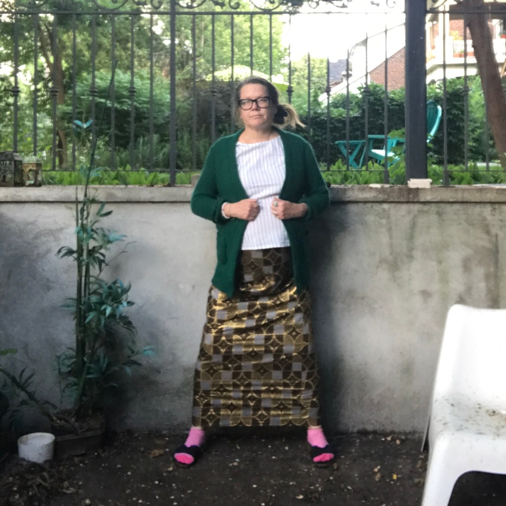 Anyway, I shall endeavour to catalog all the things by category, beginning with clothing today. I picked up a green Kenar cardigan, a striped Old Navy flutter-sleeved top and a metallic print long skirt. Put together I felt that they gave off a bit of a Dries Van Noten vibe.