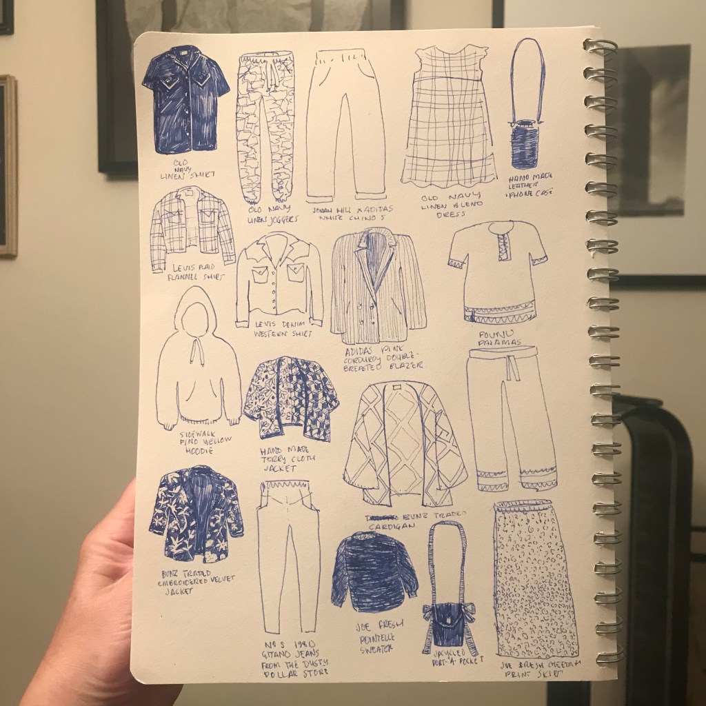 I should have also kept a visual ledger of all the things I got rid off during the COVID Crisis. I still have one more page of clothing to add. I’ve just run out of pages in my sketchbook to draw them in.