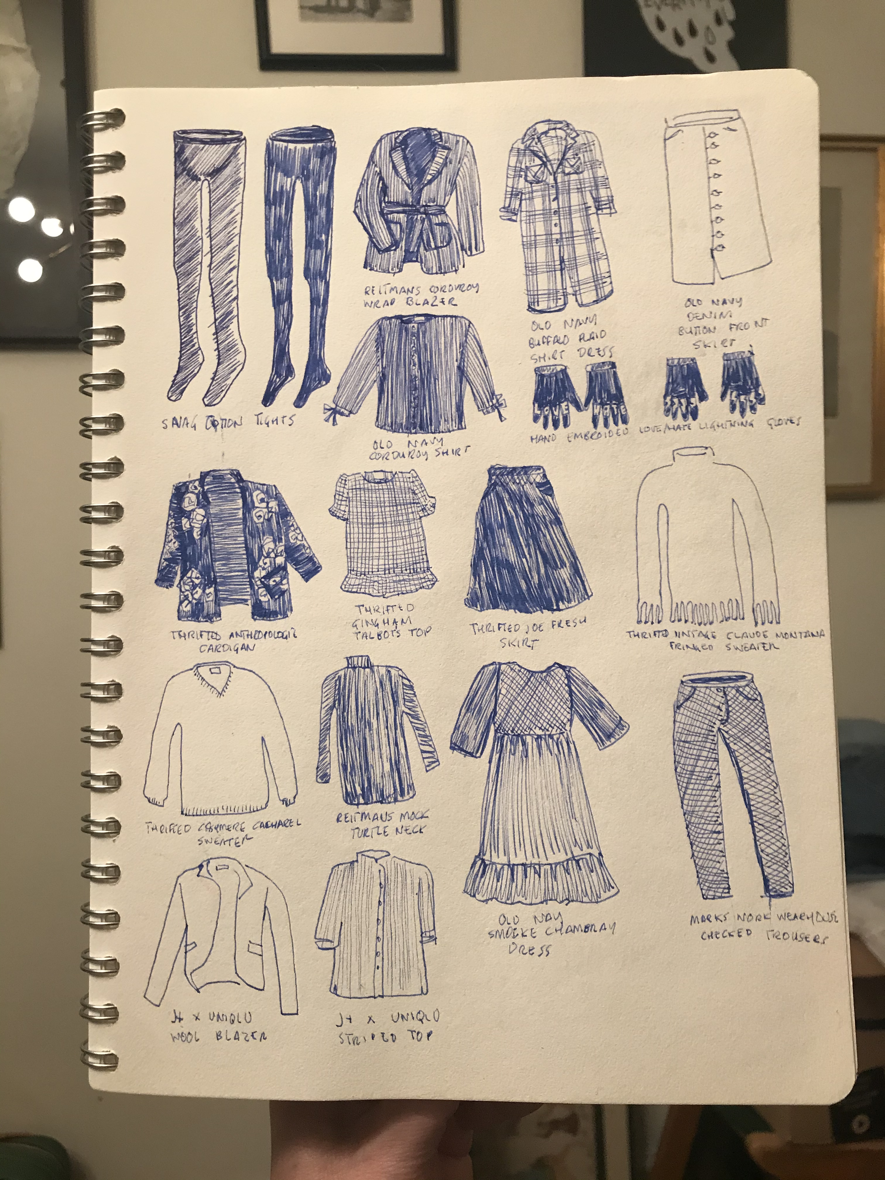 I should have also kept a visual ledger of all the things I got rid off during the COVID Crisis. I still have one more page of clothing to add. I’ve just run out of pages in my sketchbook to draw them in.