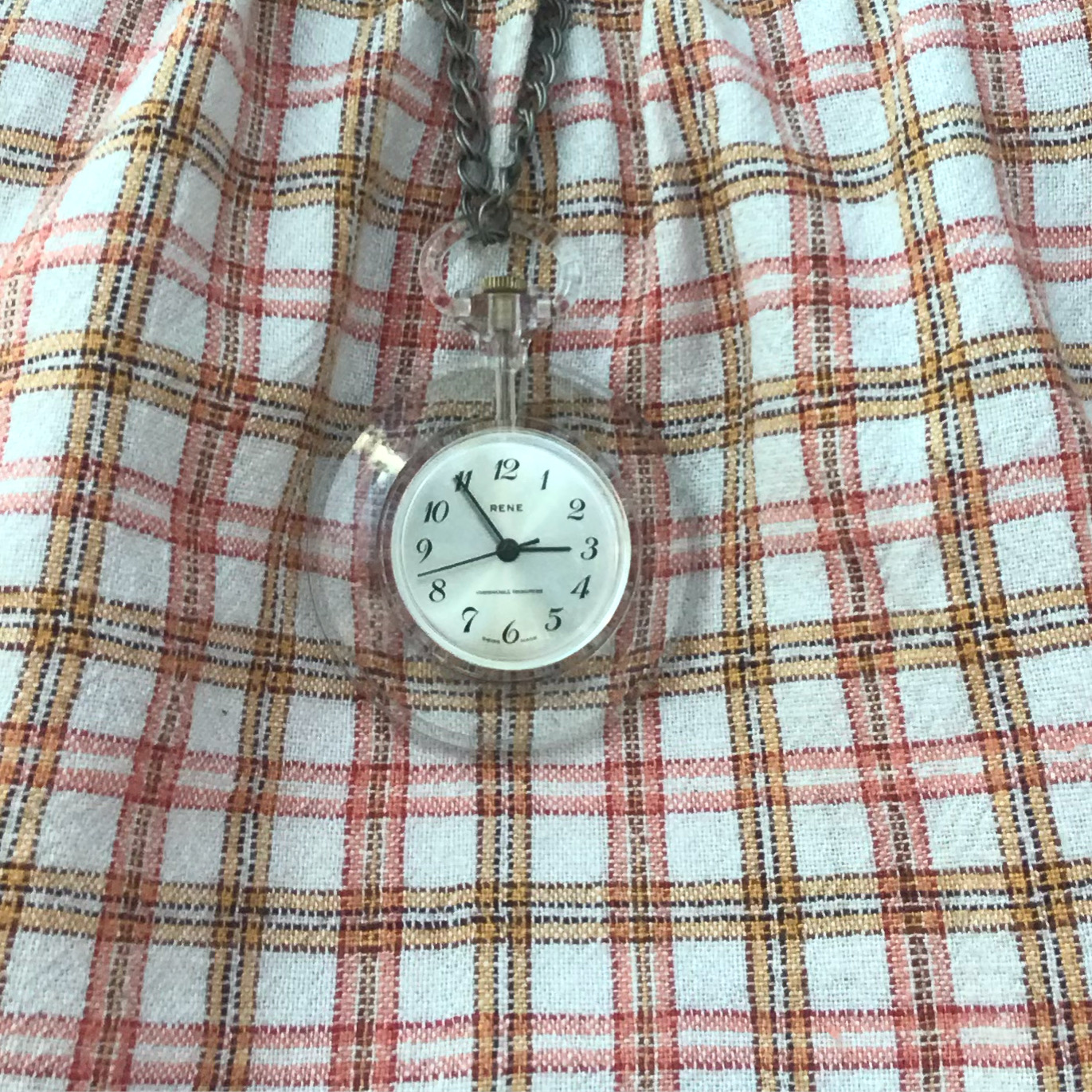 Here’s an acrylic pocketwatch that I won in an eBay auction. I don’t remember bidding on it, only hitting the watch button. But I’m not mad. I like all things shiny and clear. Now I gotta source a see-through chain to hang it from.