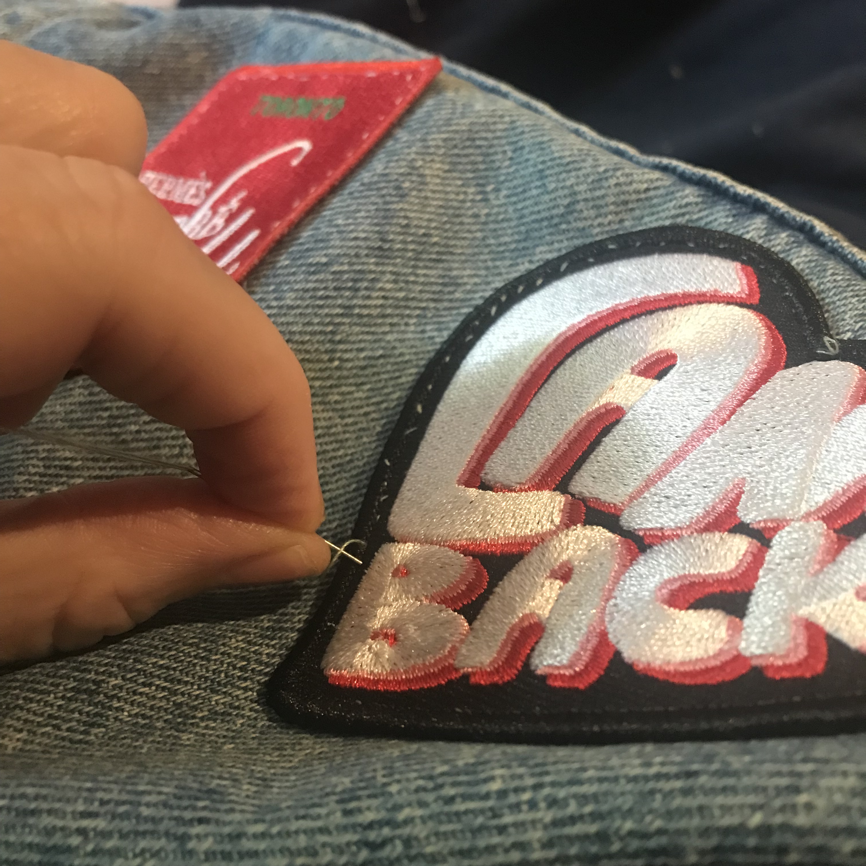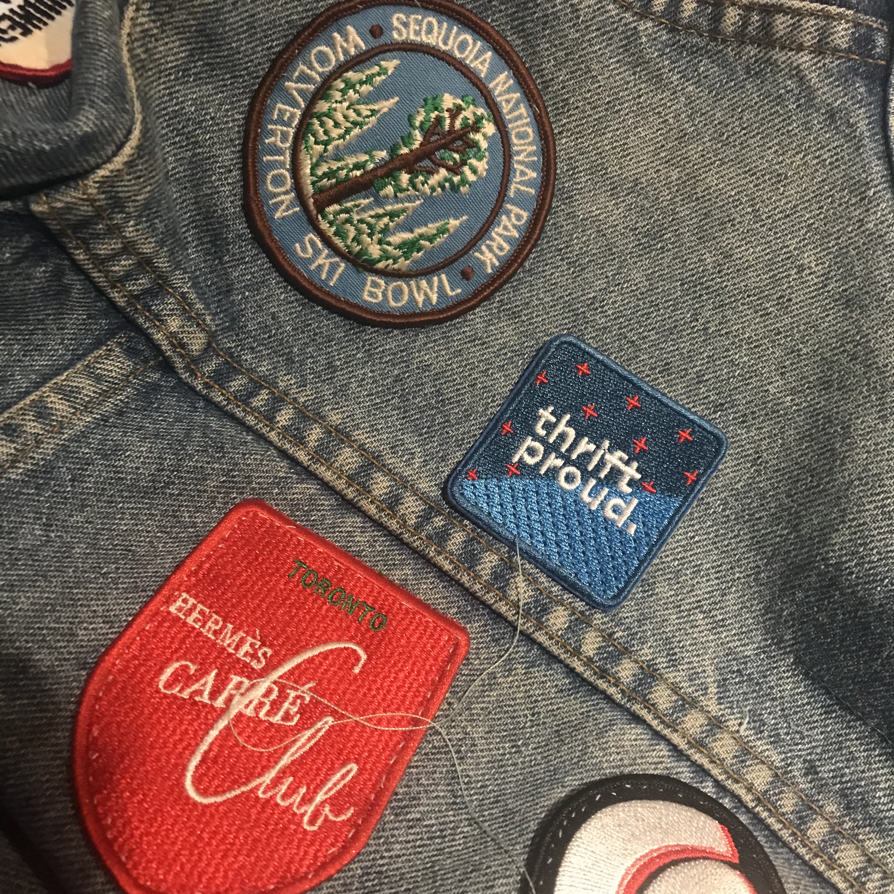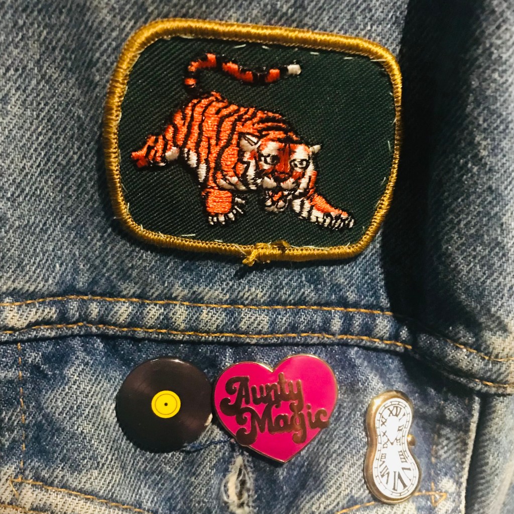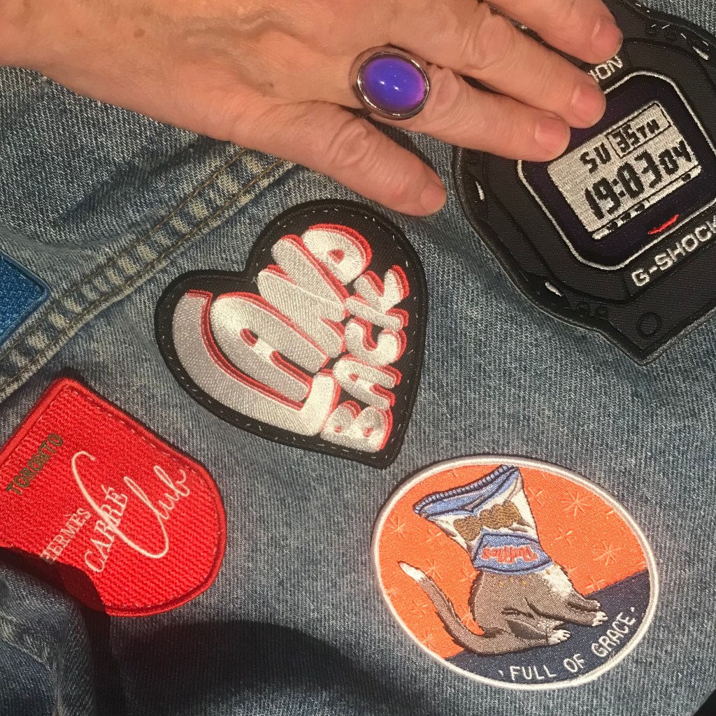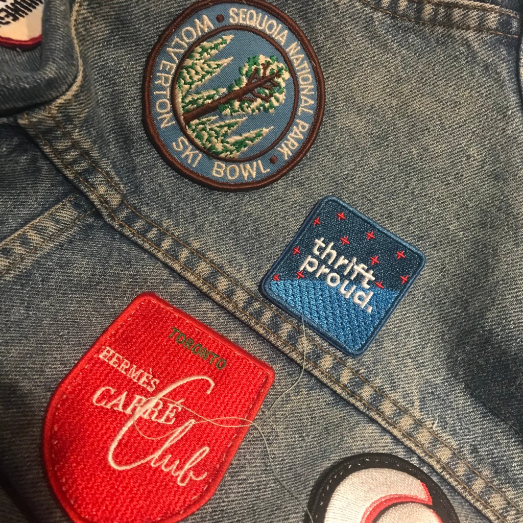 I spent the afternoon letting the YouTube algorithms play DJ while I stitched them onto my jean jacket (I don’t like ironing patches on because I like to play with placement).
