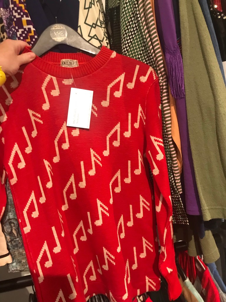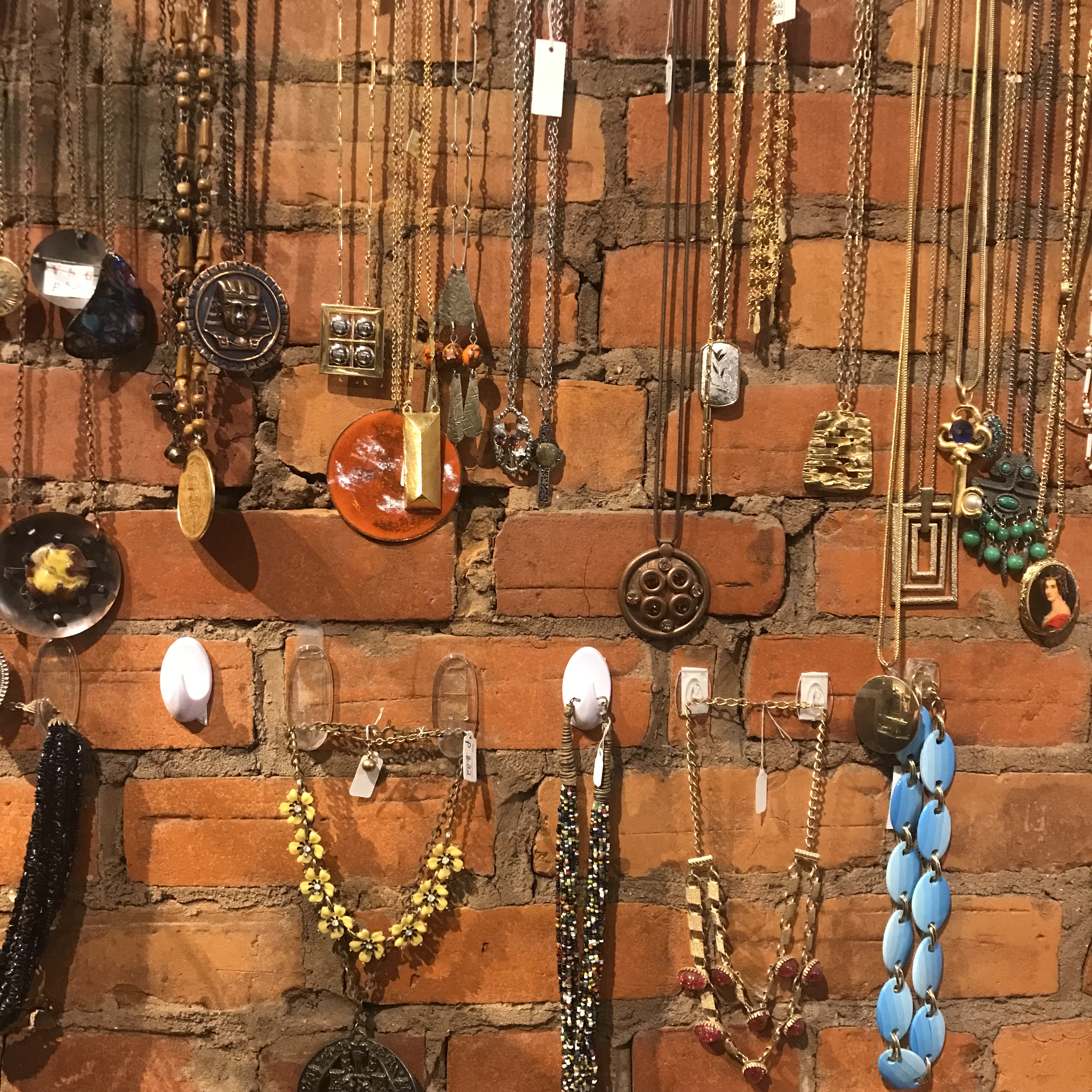 We went to Hamilton to visit friends last weekend and did a little antiquing along the way. i wanted to visit a vintage clothing store called Vintage Soul Geek because they had come across a cache of new old stock knitwear from the 1960s. Did not buy anything but had fun seeing these museum pieces in person. They also had a great jewelry wall.